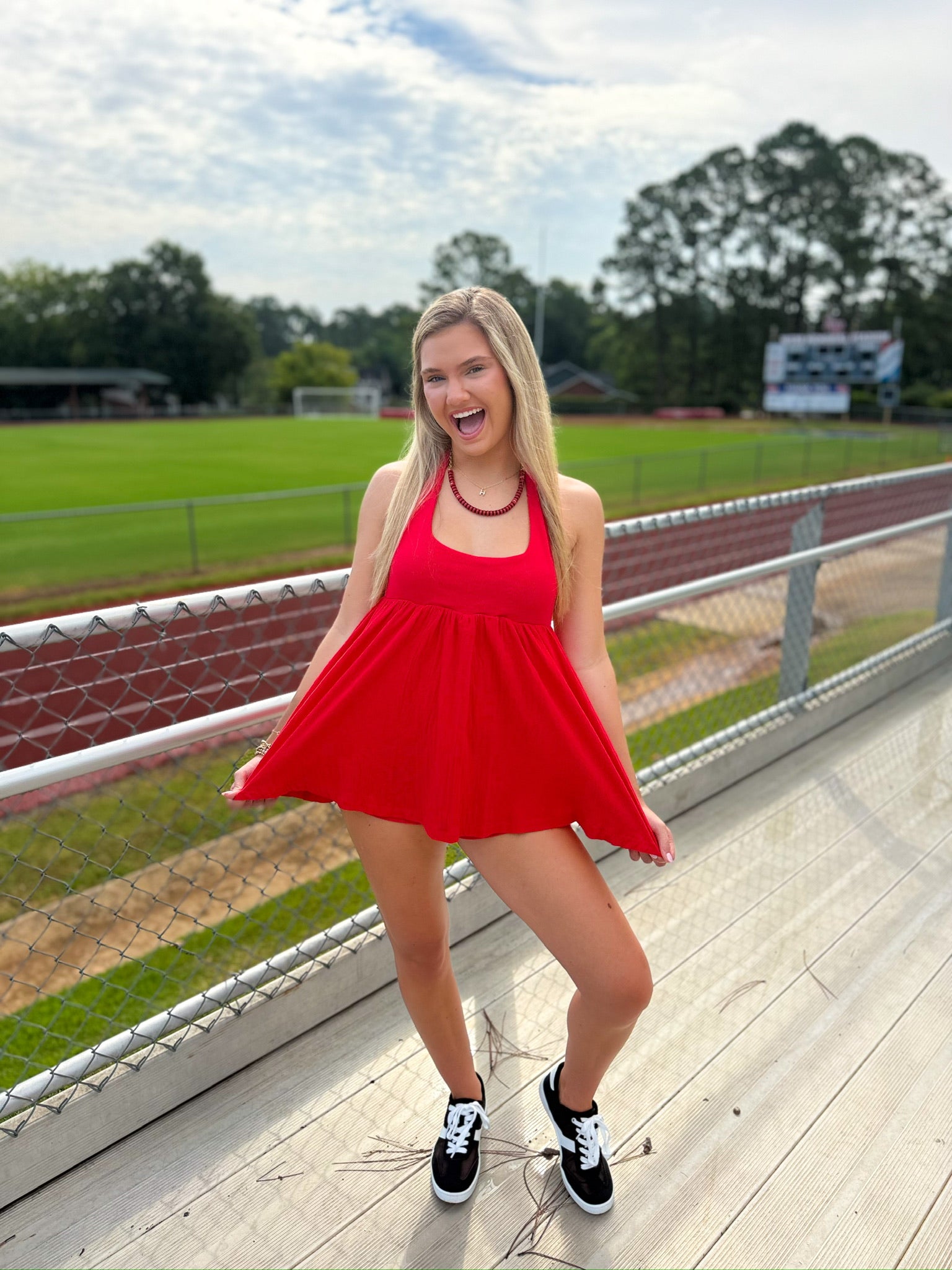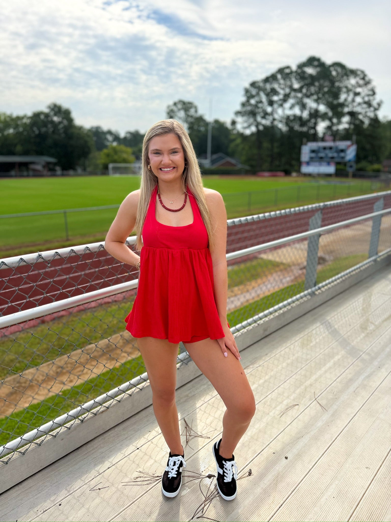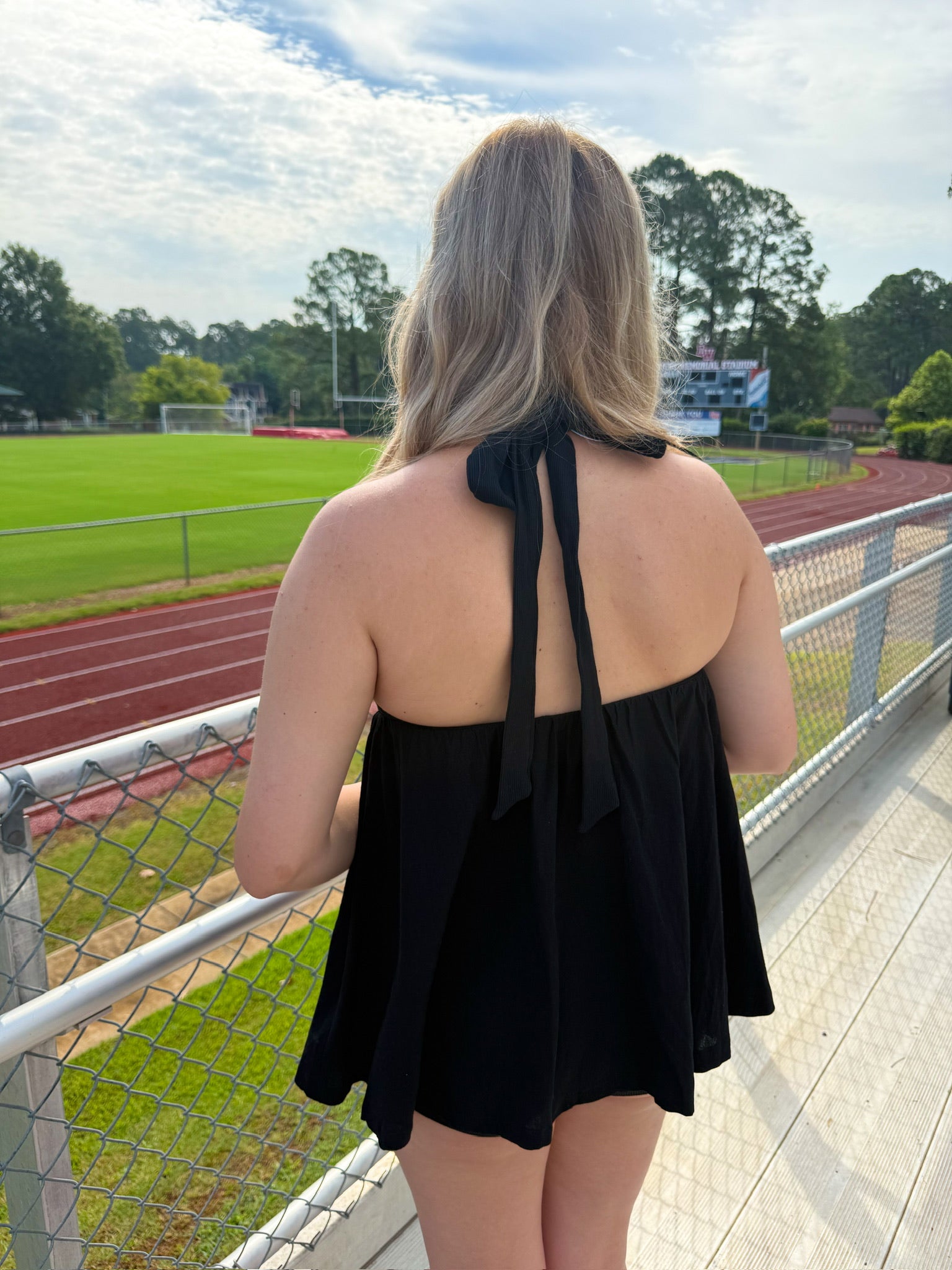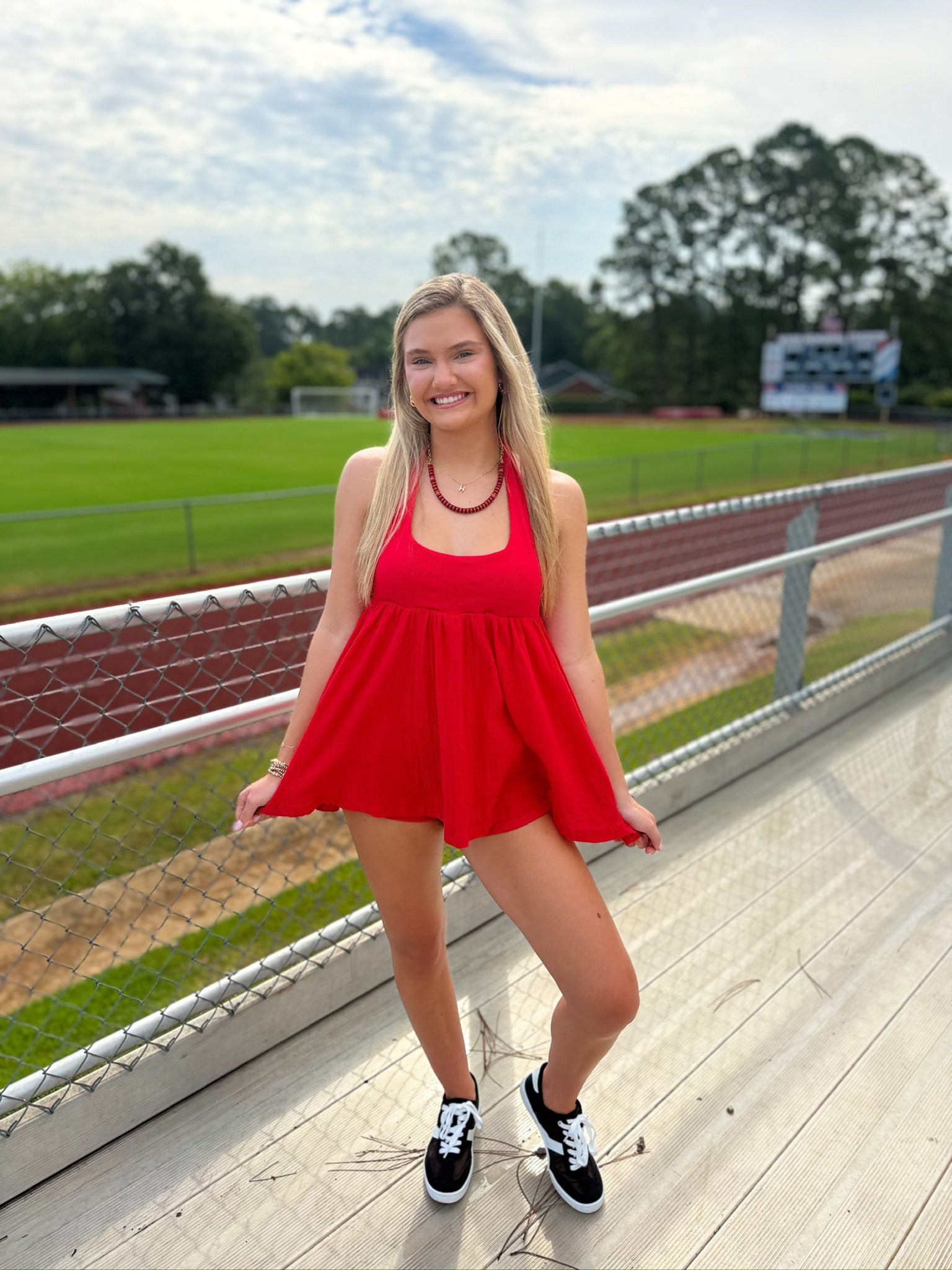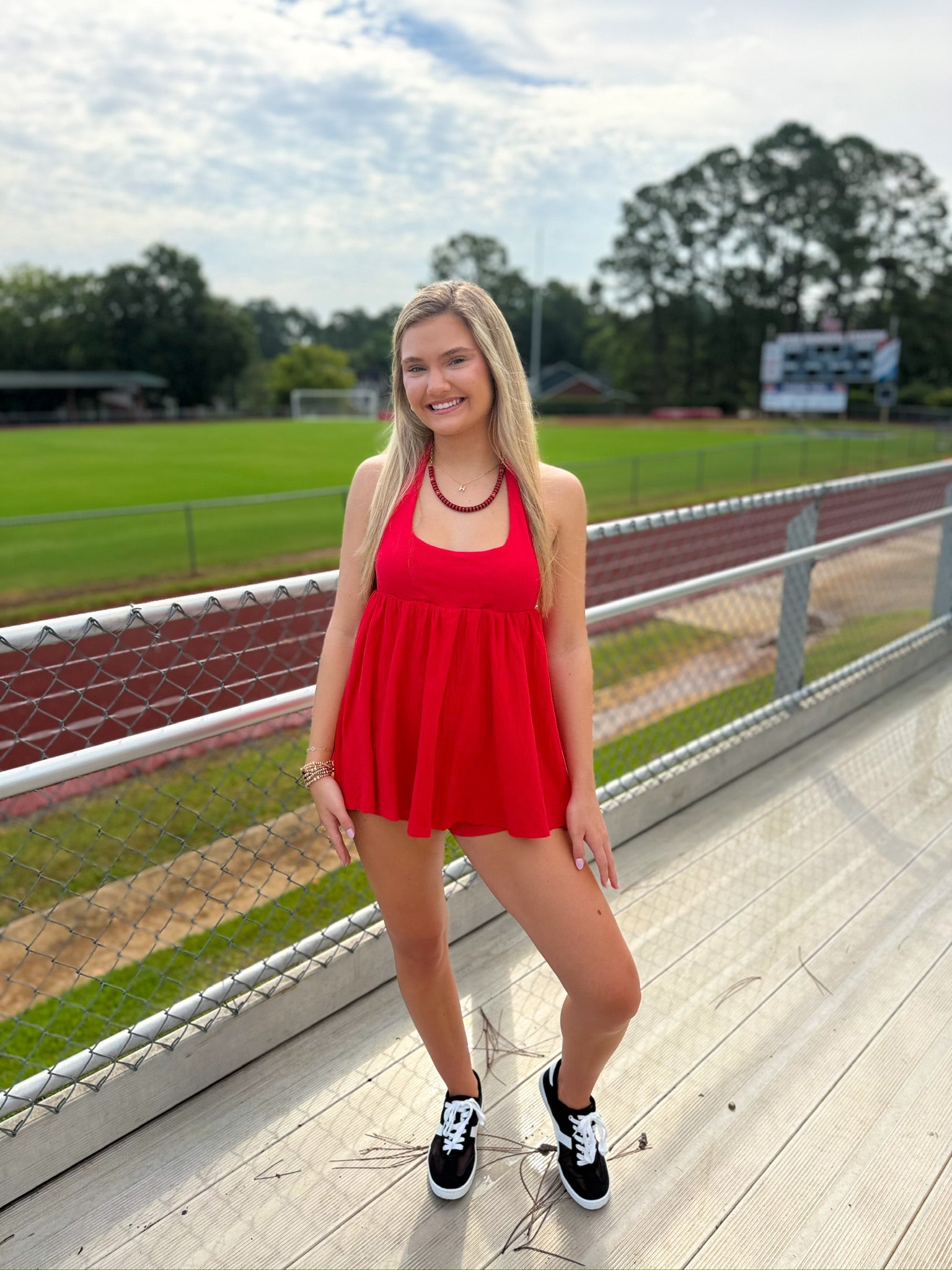 HALTER BABYDOLL ROMPER WITH ATTACHED BIKER SHORTS