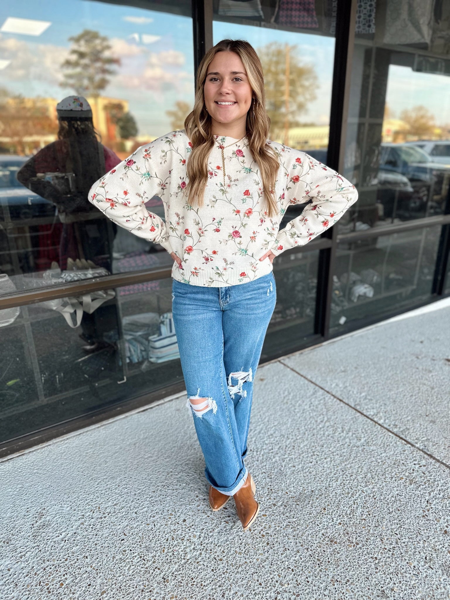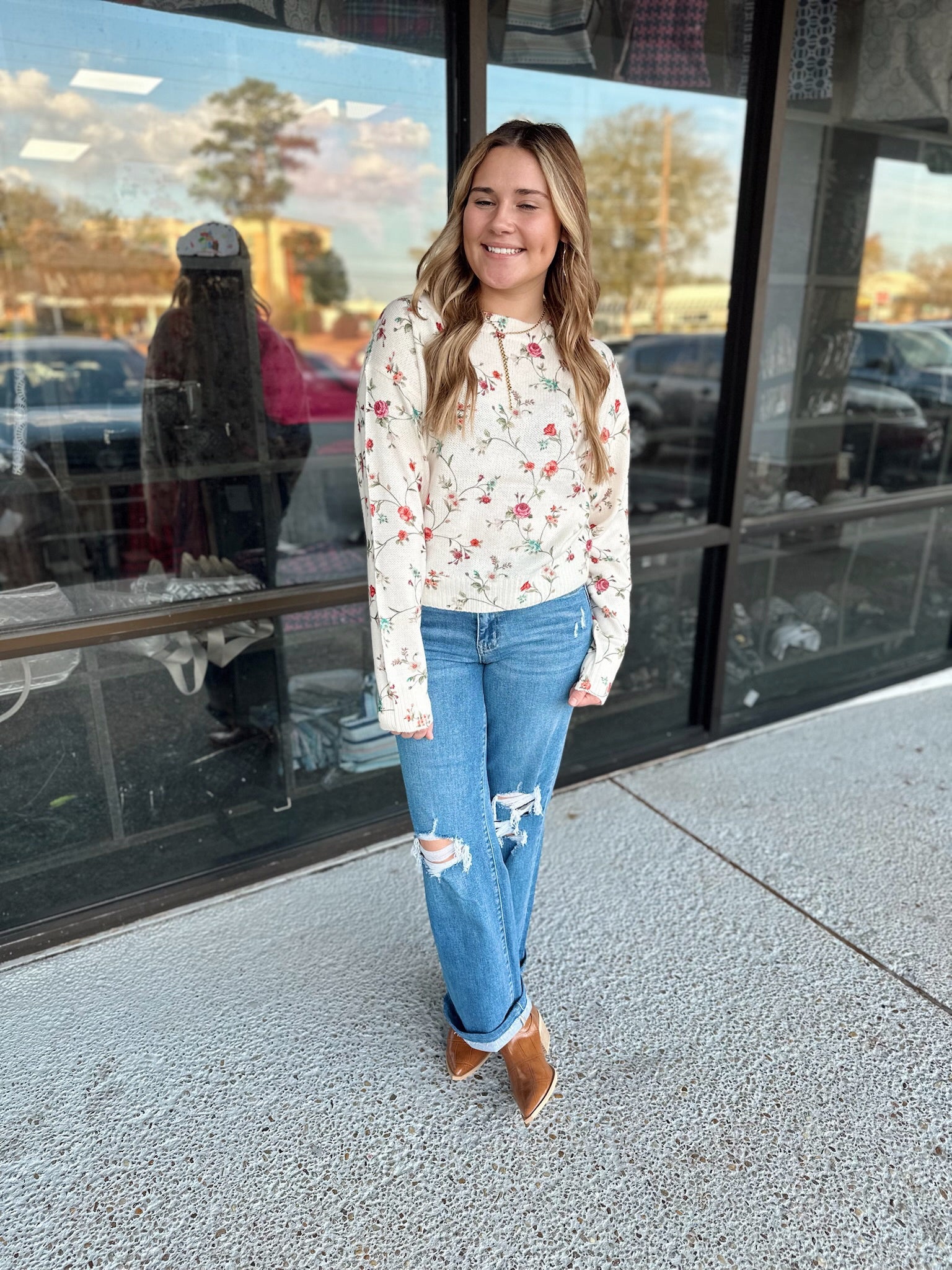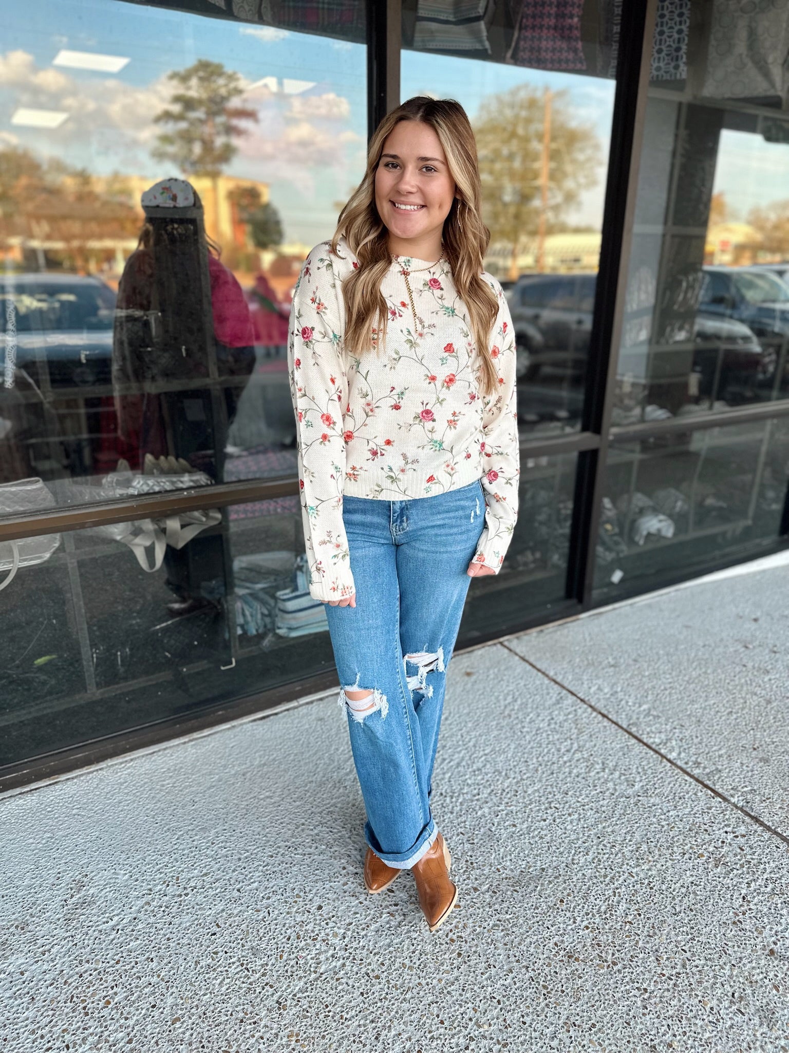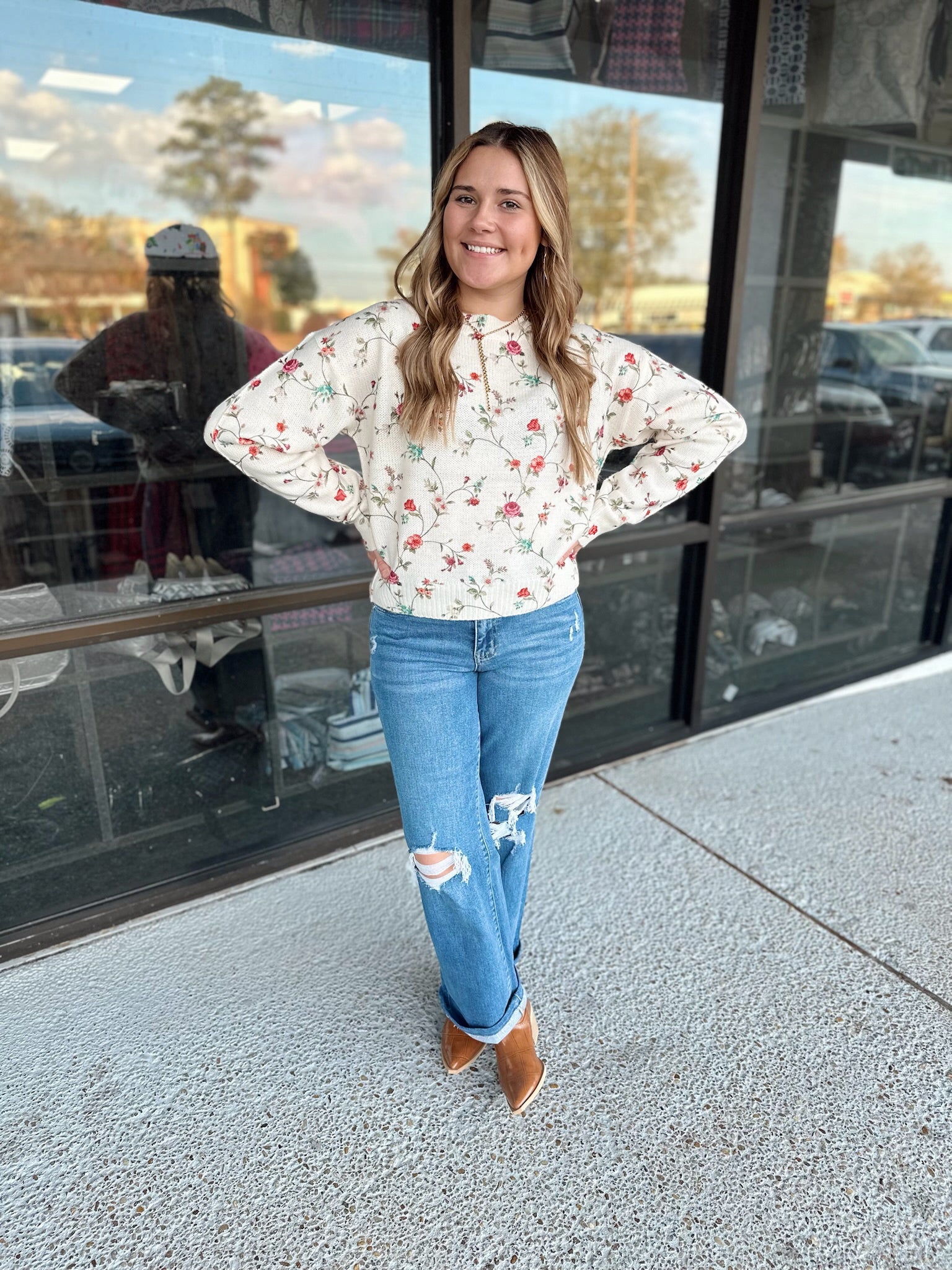 FLORAL PRINT CREWNECK SWEATER KNIT TOP