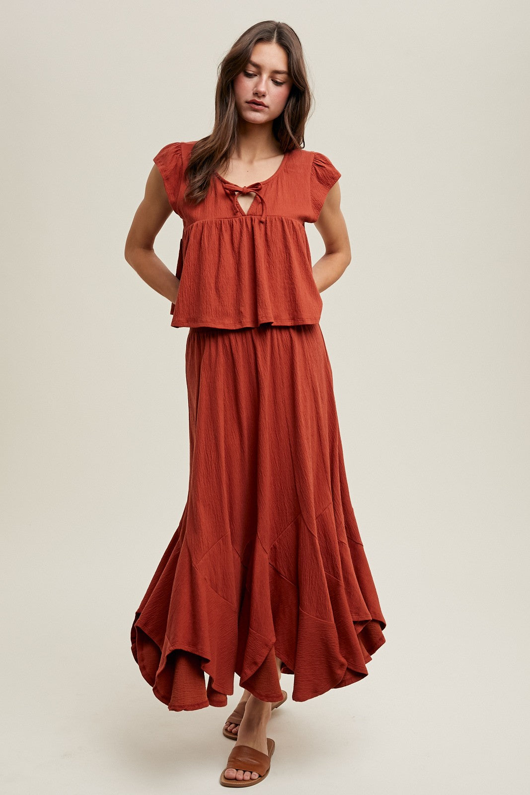 COTTON RELAXED CROP TOP AND SKIRT SET - BOTTOM: ELASTIC WAISTBAND, MINI SKIRT LINING