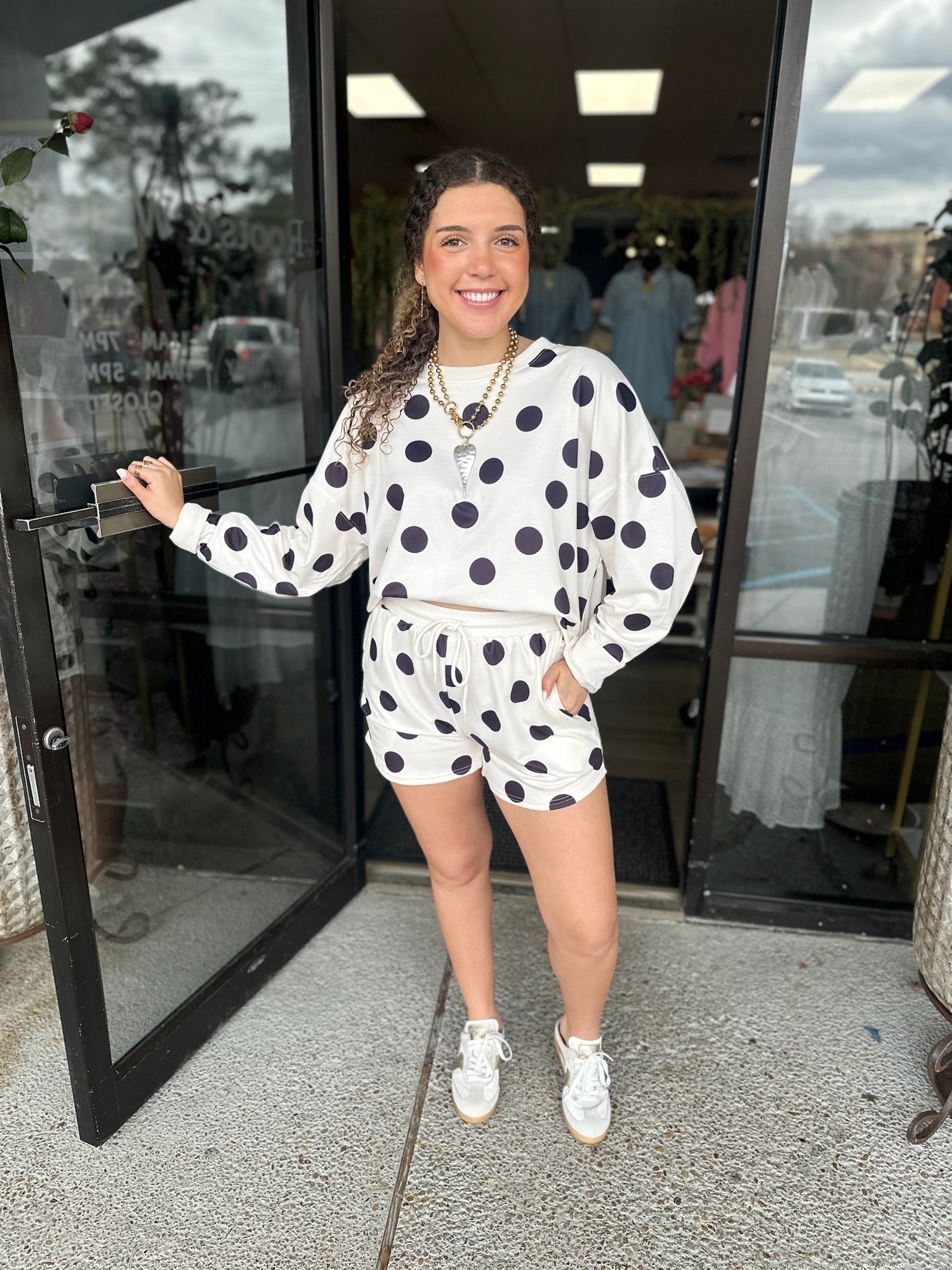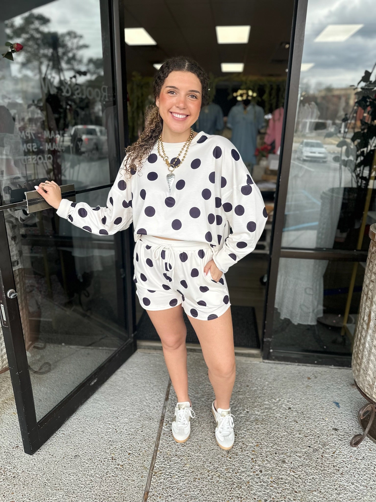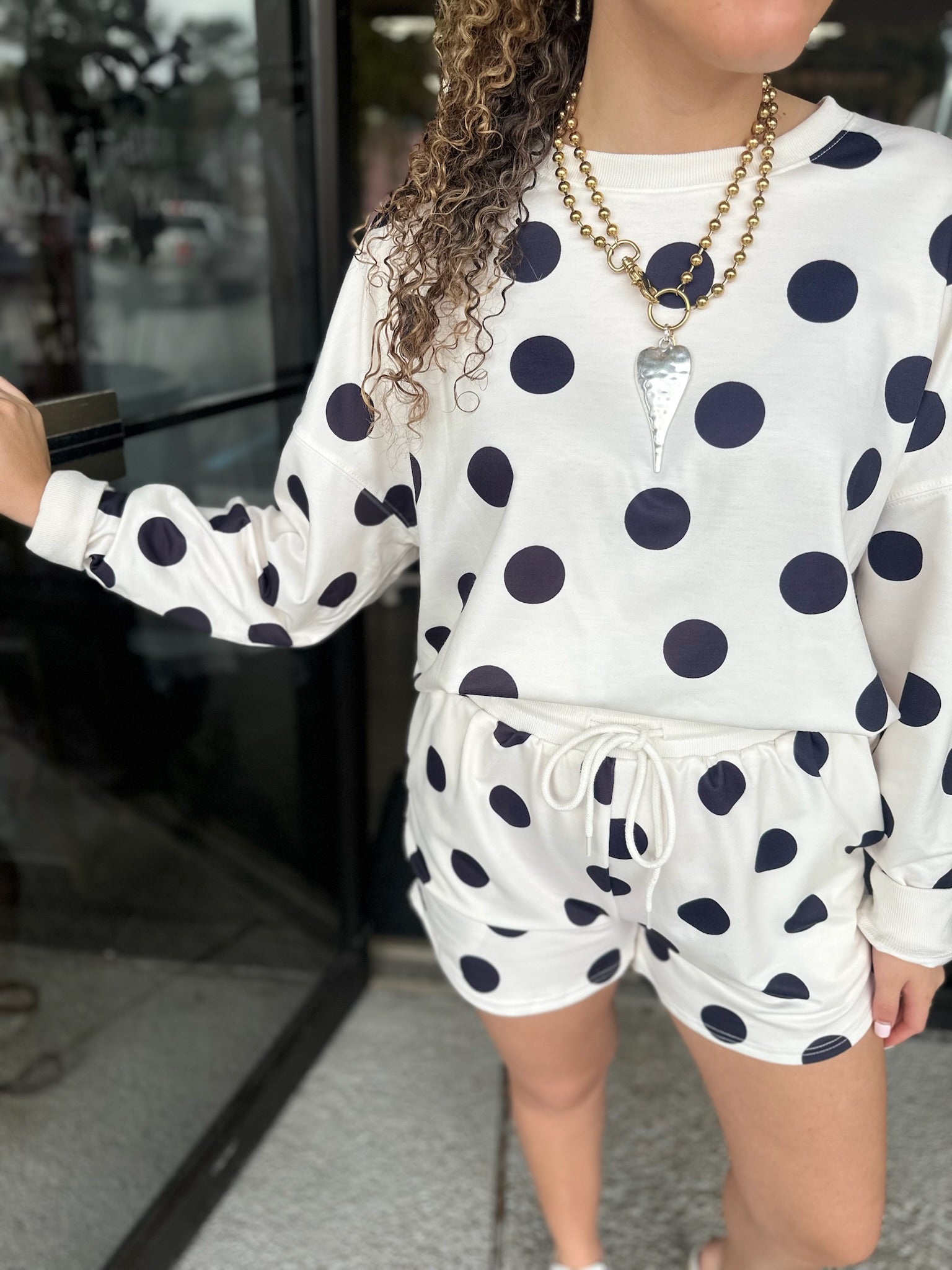✨ Material: 95%Polyester+5%Elastane ✨ Pattern: Polka Dot ✨ Sleeve: Long Sleeve, Drop Shoulder ✨ Neck: Round Neck
