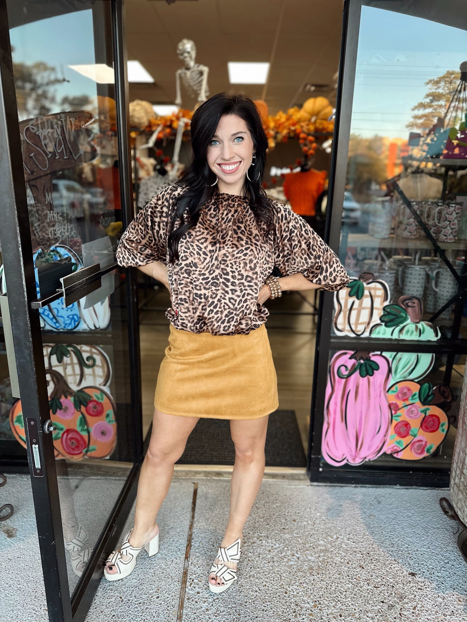 Model is wearing an XS - Short sleeve leopard print