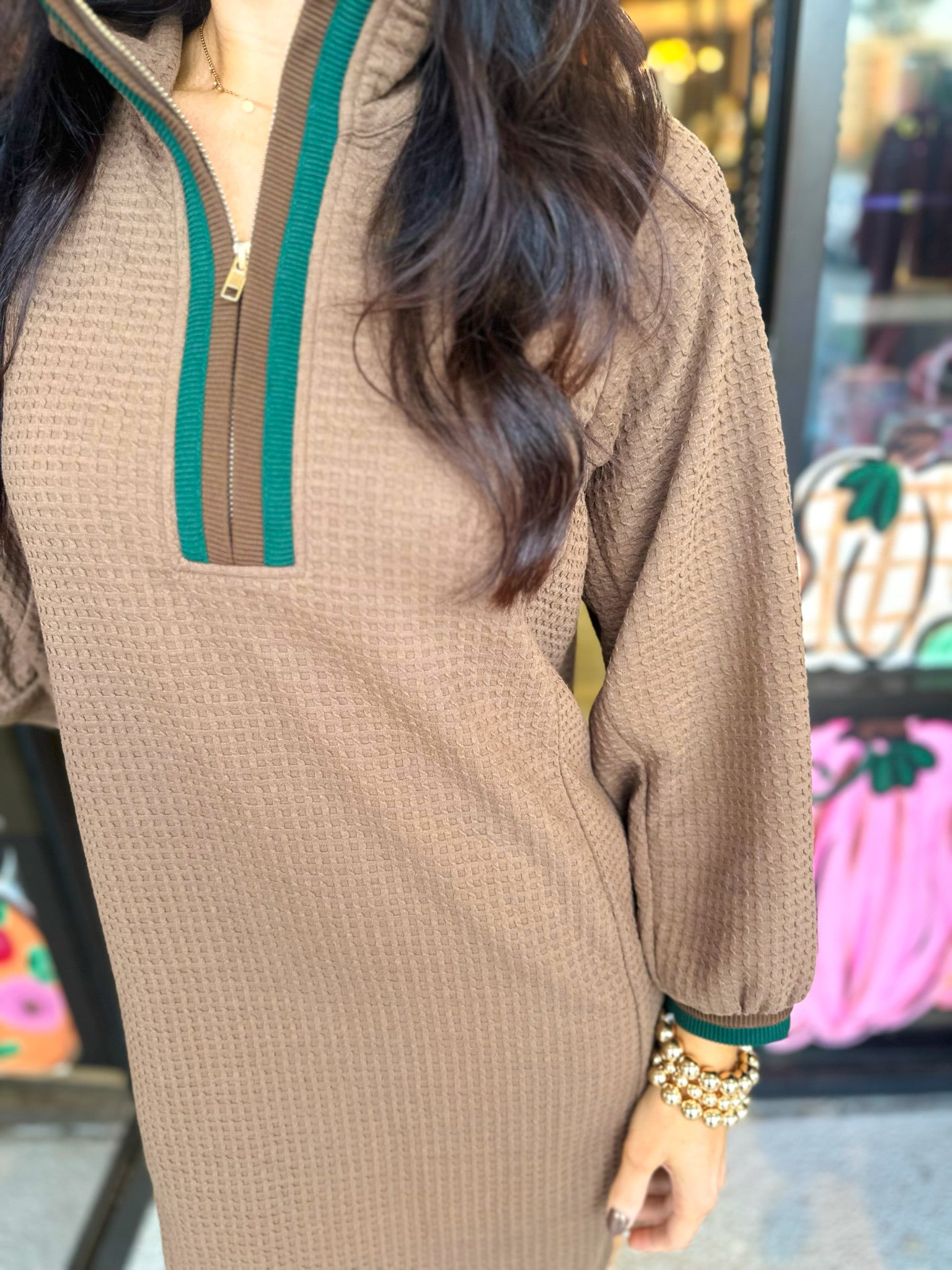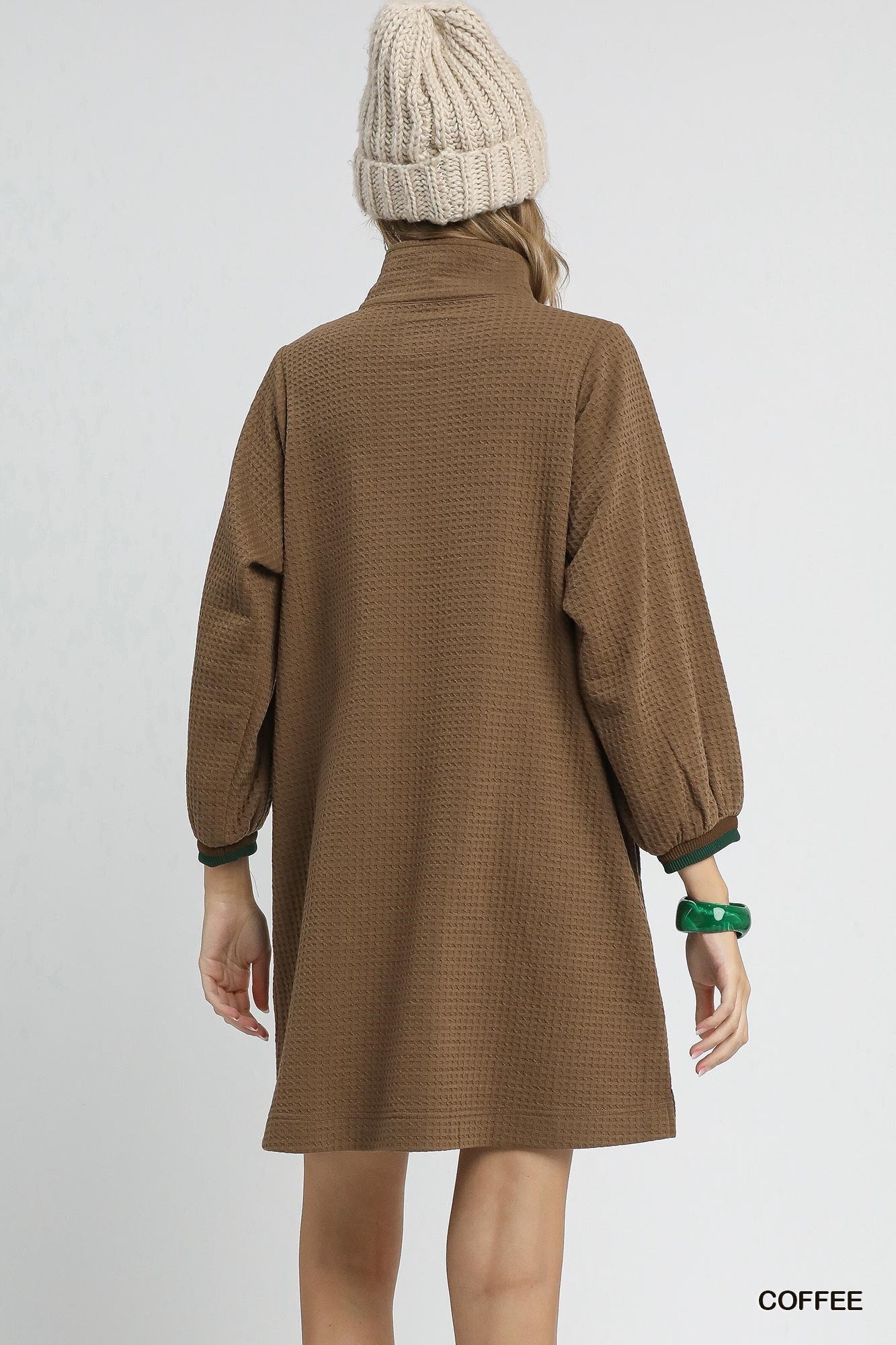 • High neck with quarter zip front
