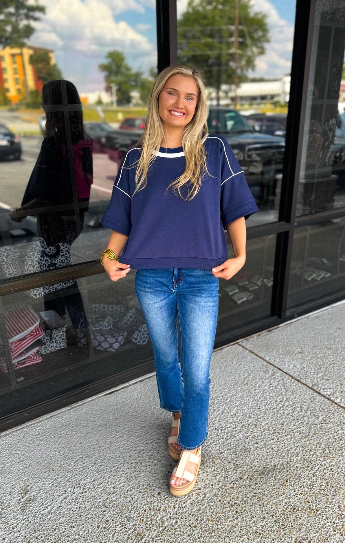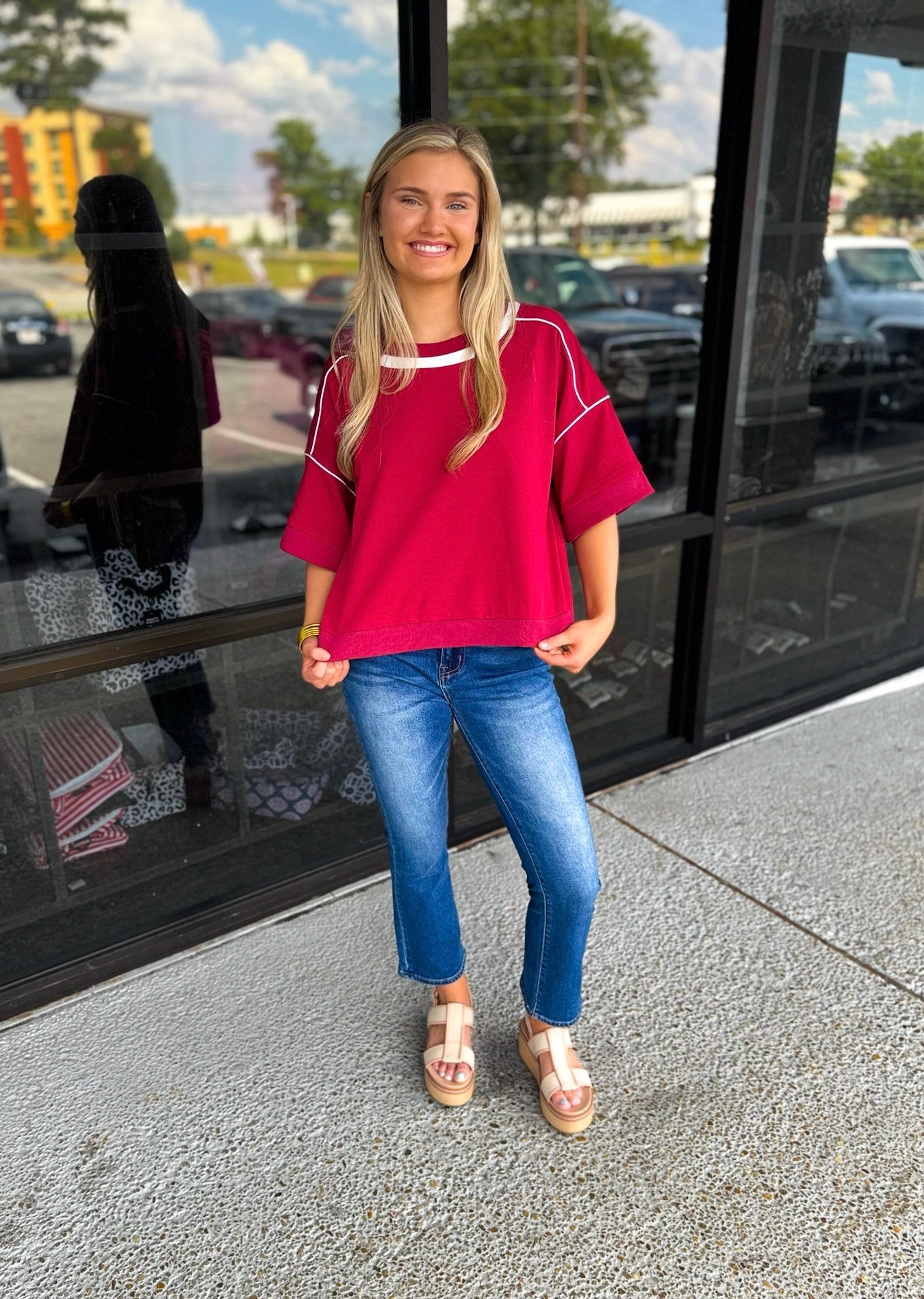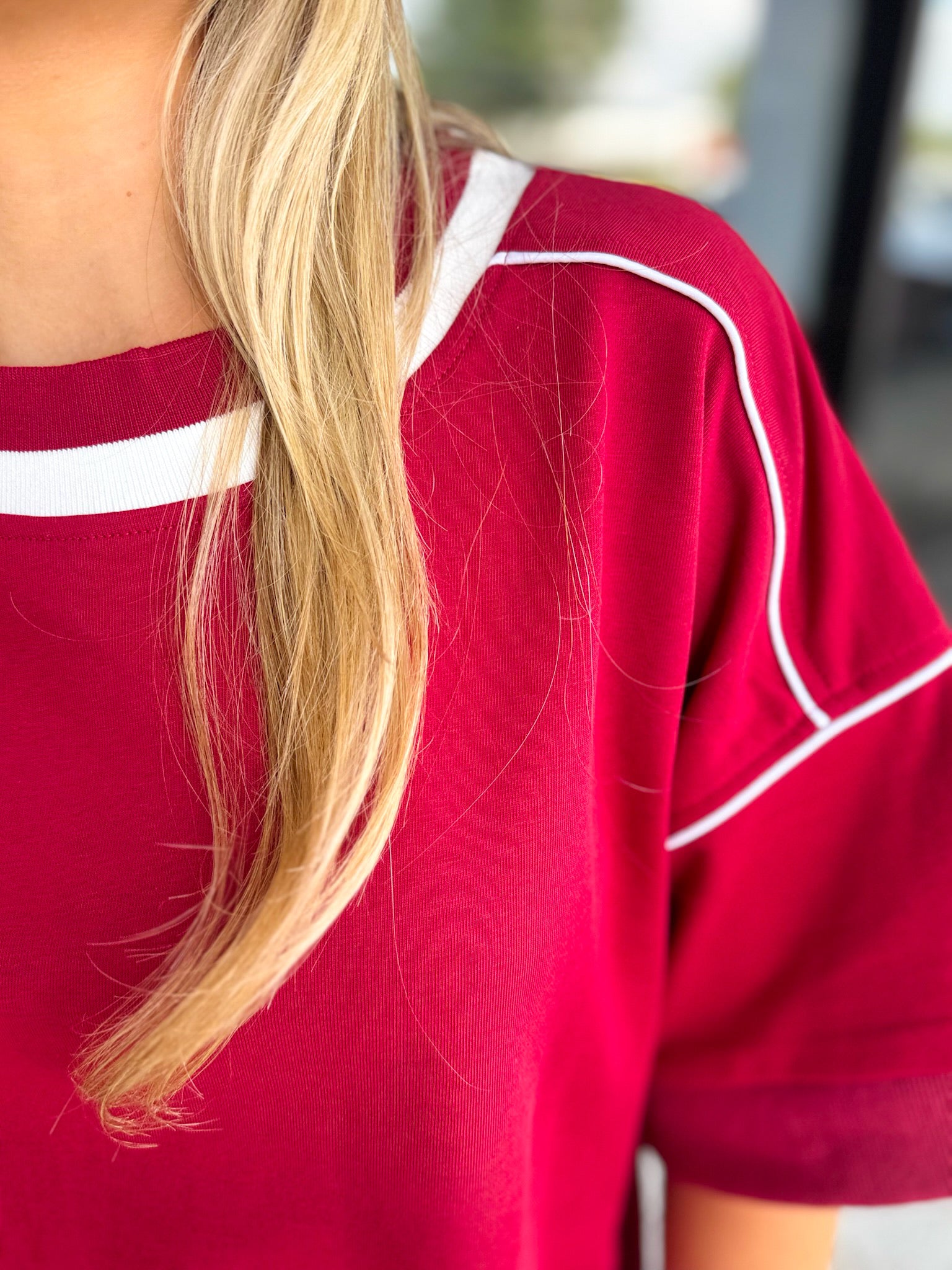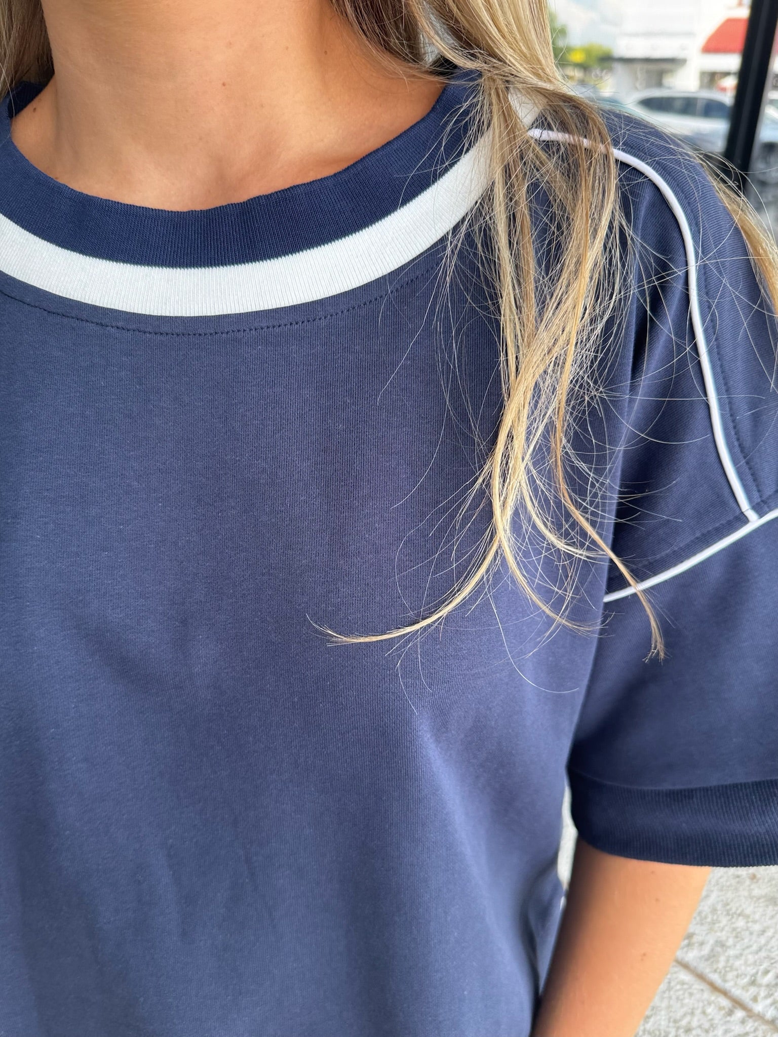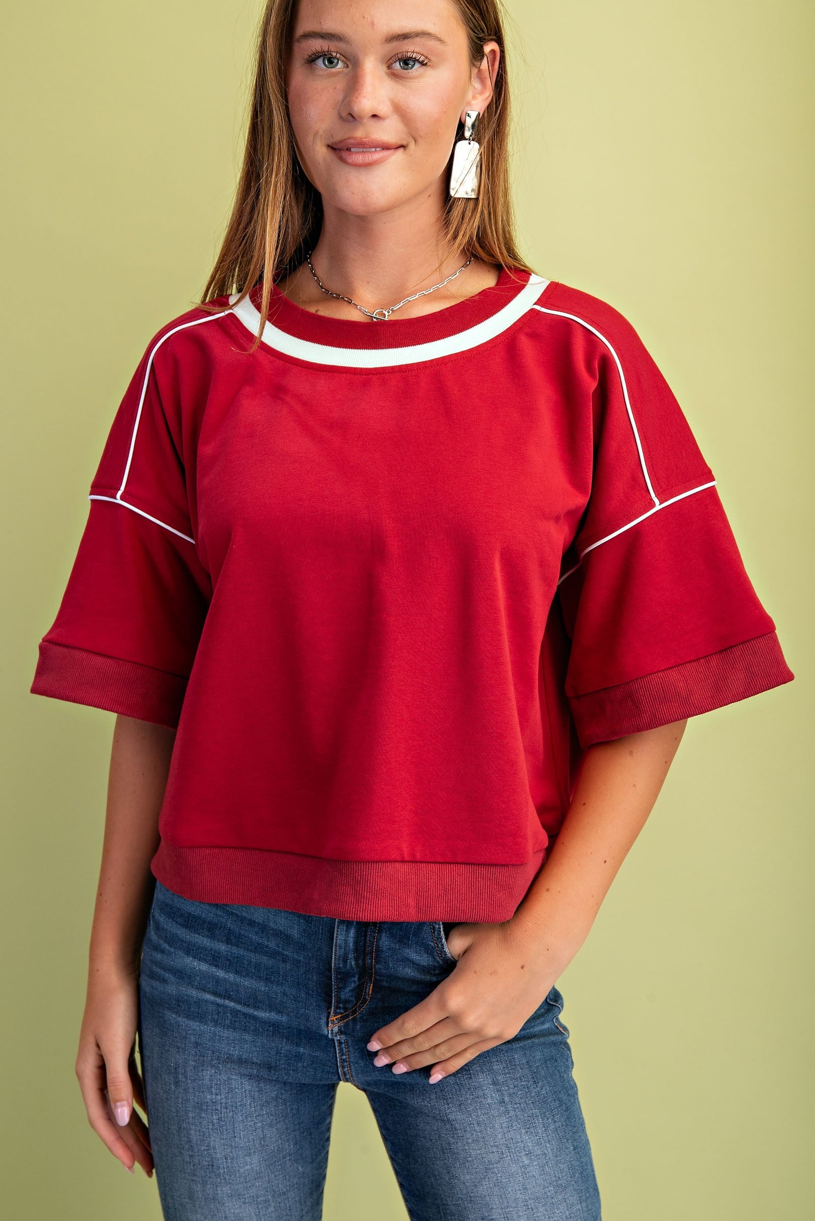 1/2 Sleeve Boxy Fit Sweatshirt with a Contrasting Stripe and Piping Details