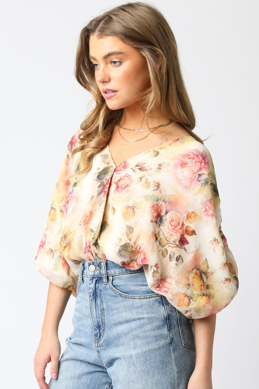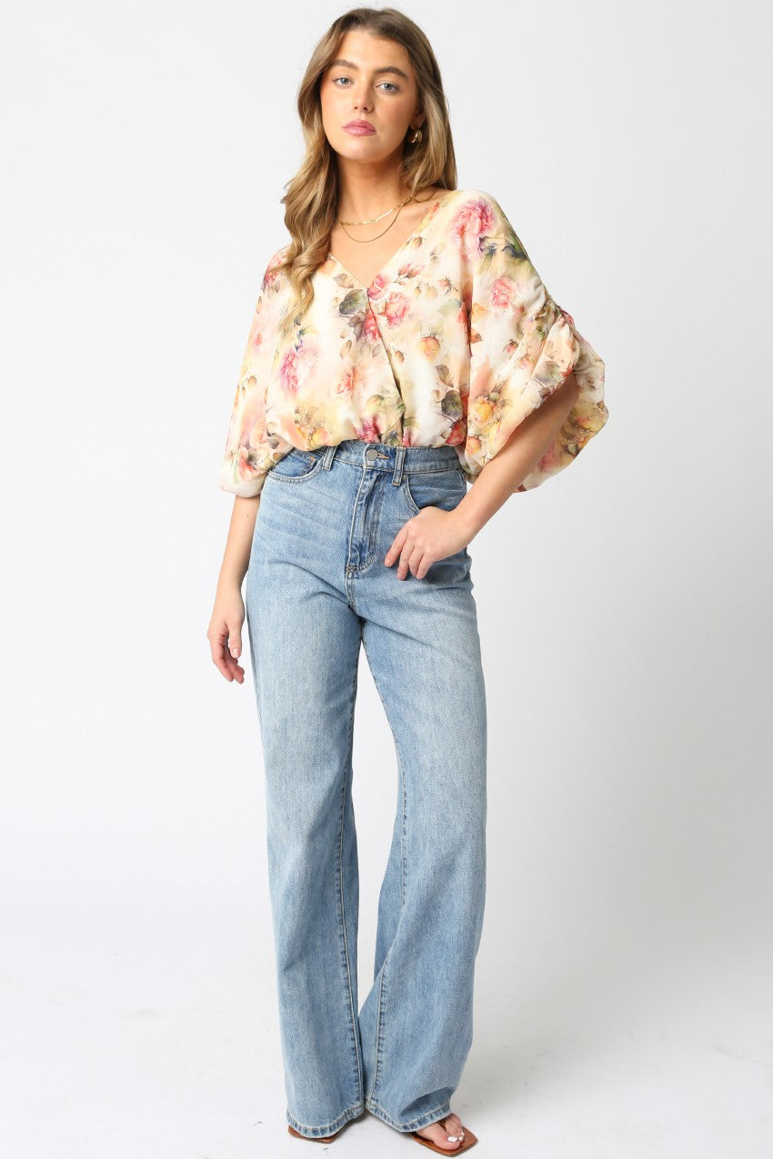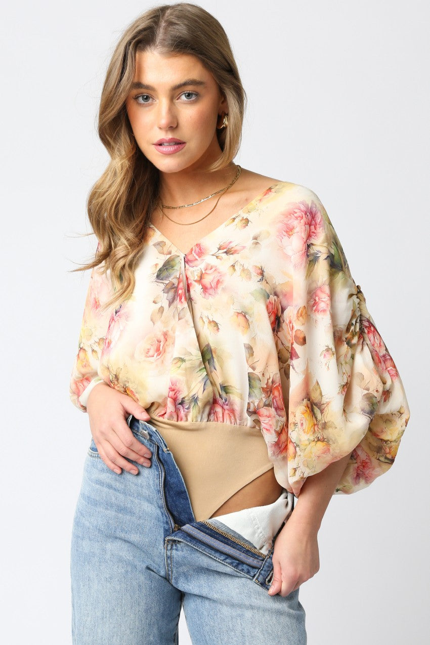 Bubble sleeve with a v neckline BODYSUIT