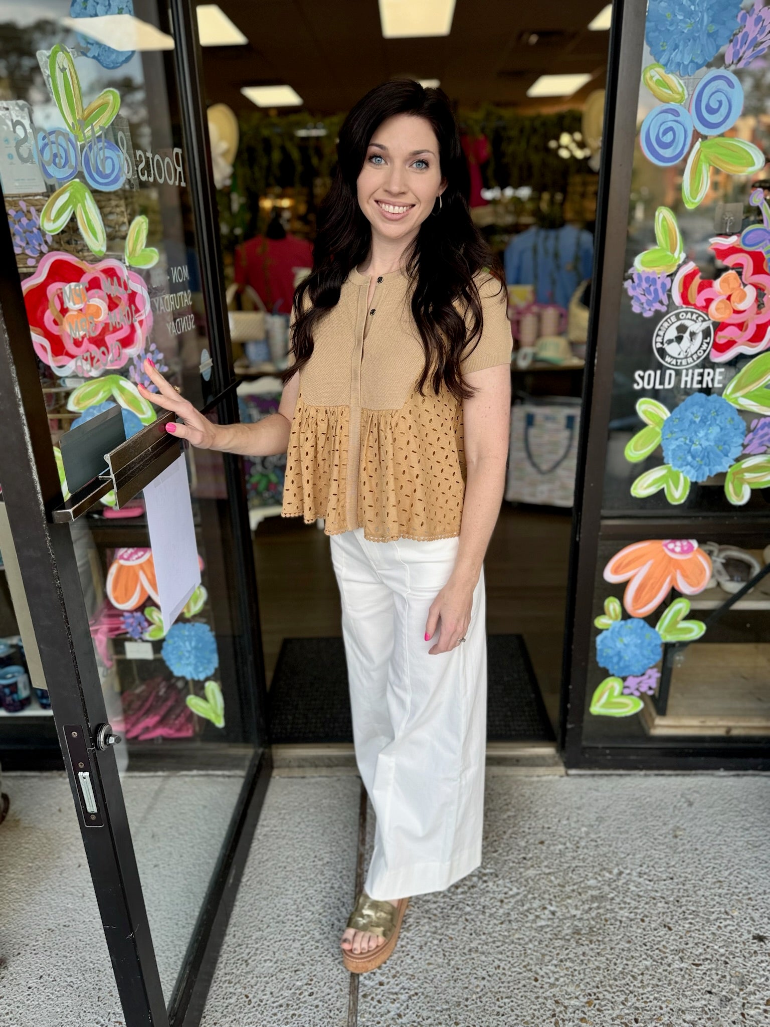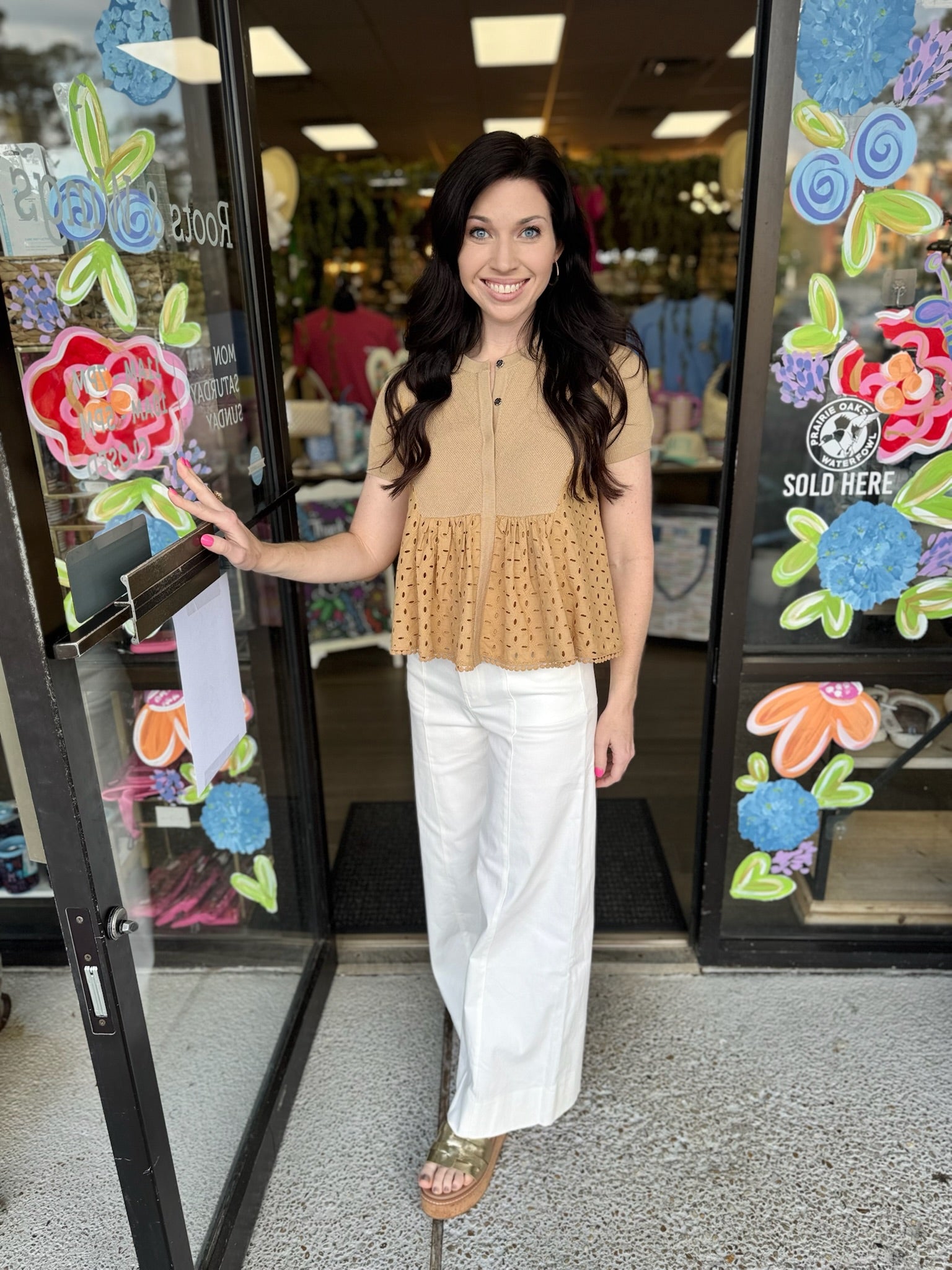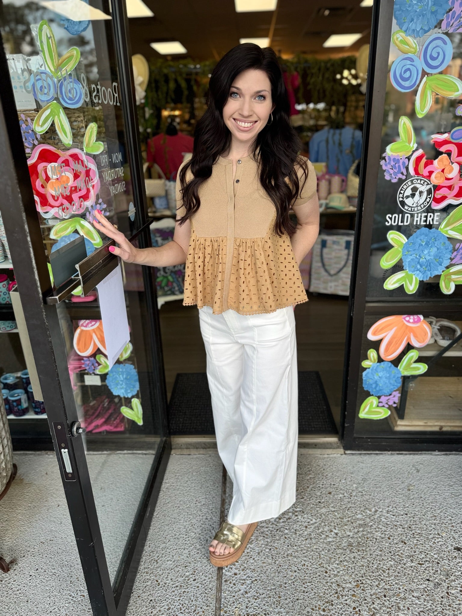 SHORT-SLEEVE ROUND NECK SNAP BUTTON WOVEN COMBO CARDIGAN