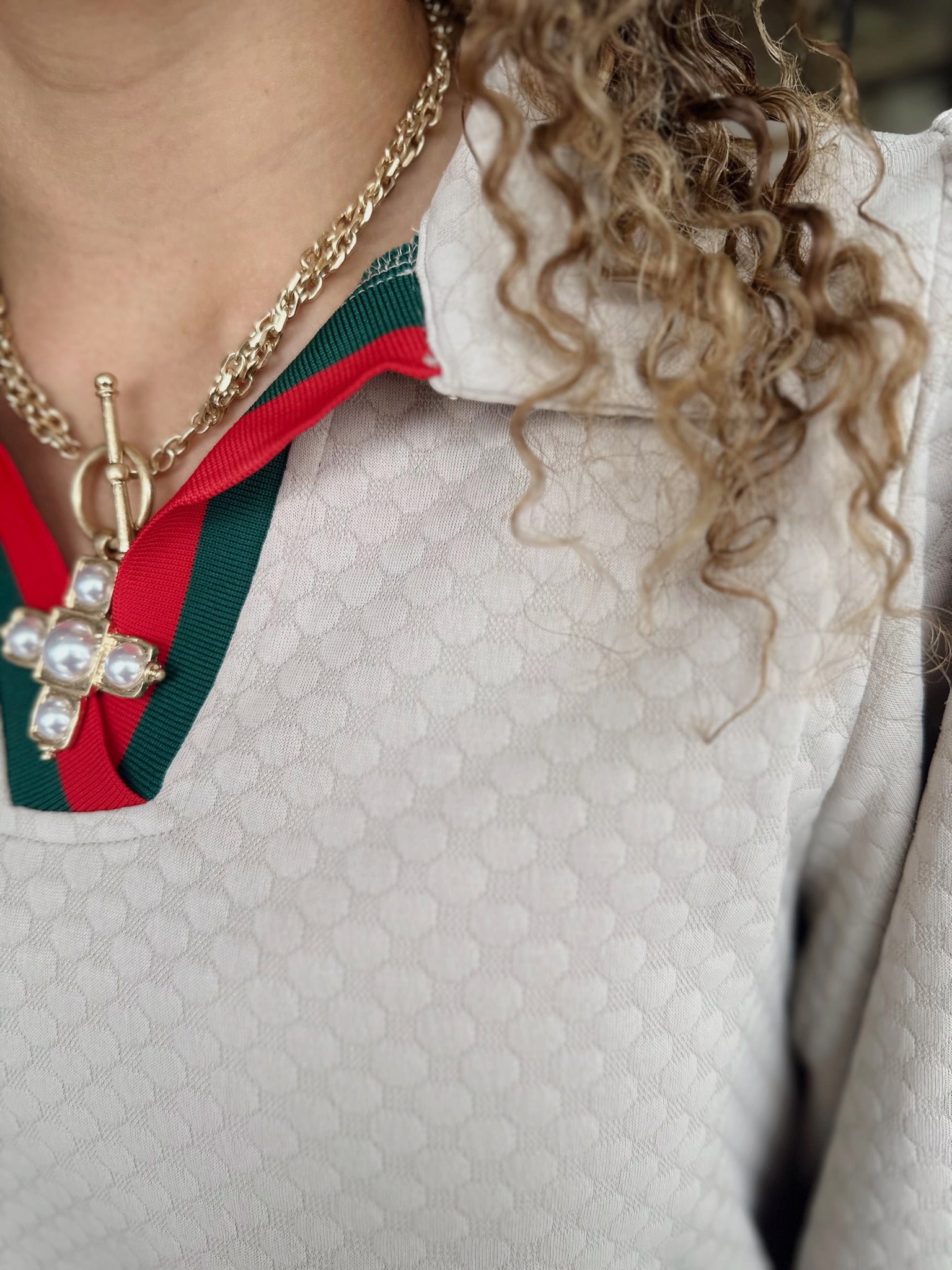 3/4 puff sleeves casual dress, collared neckline, textured fabric