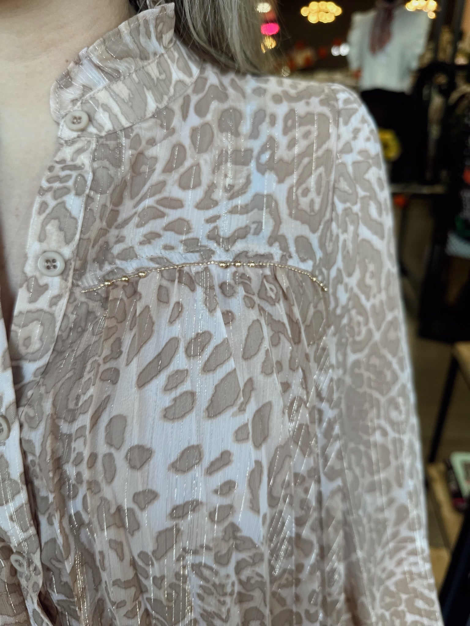 ANIMAL PRINT CHIFFON WITH LUREX PLEATED BLOUSE