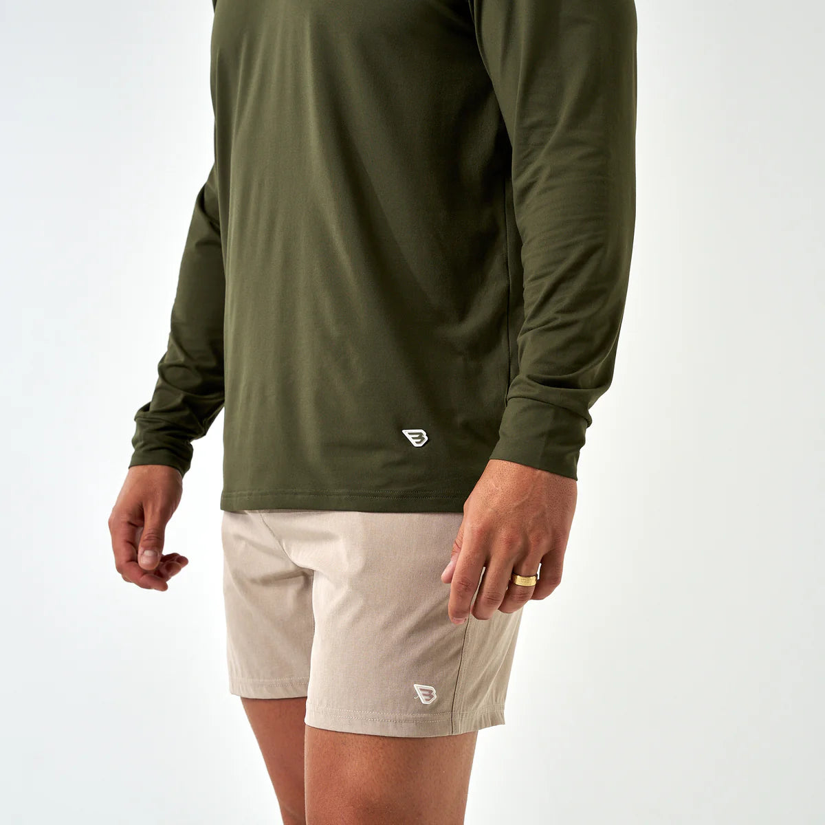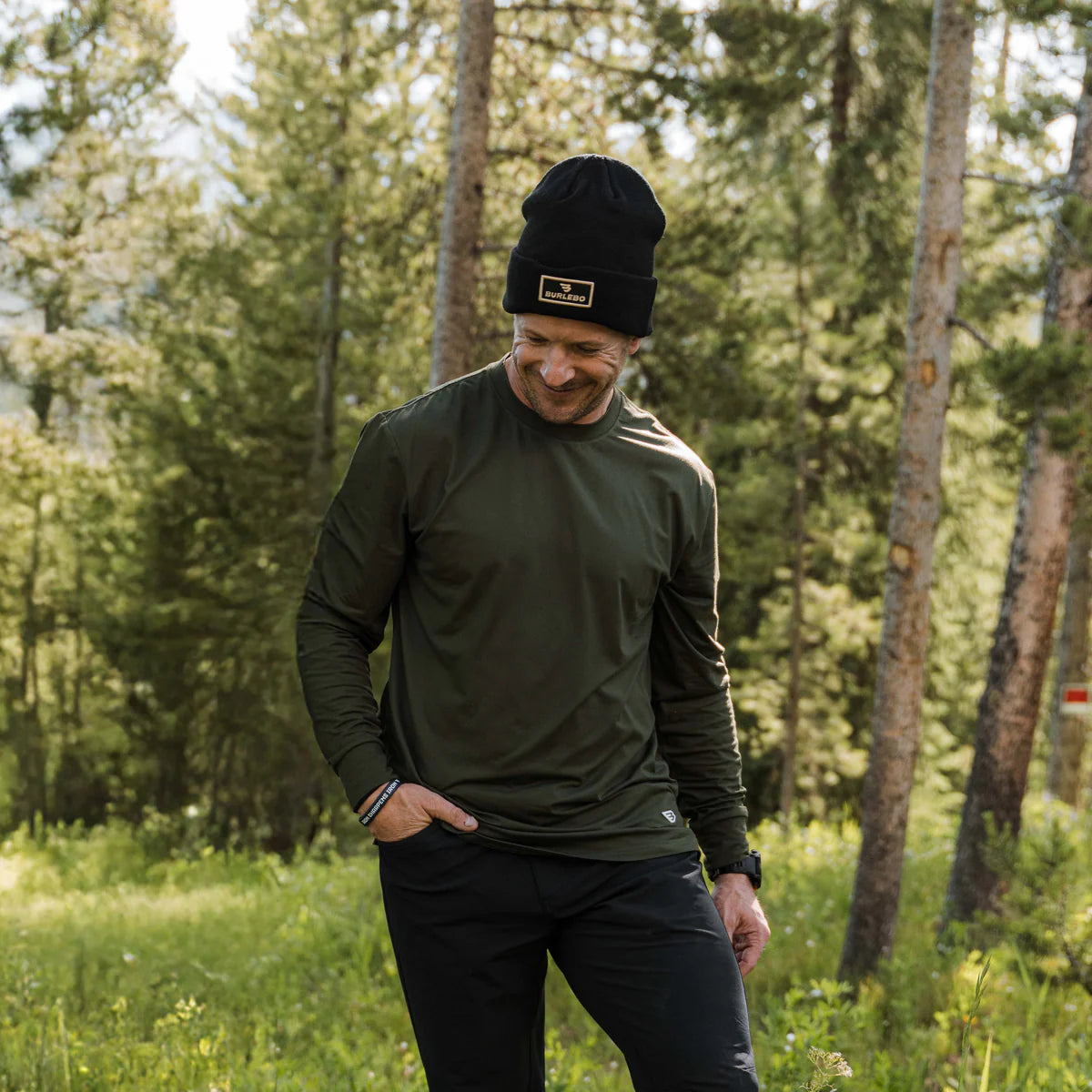 Our Long Sleeve "Go To Tee" is built for versatility, comfort, and all-day performance, no matter the season. Made from a premium blend of 91% polyester and 9% spandex, this long sleeve version delivers the same lightweight feel you love, now with added coverage. Designed with UPF 50 sun protection, it’s perfect for long days outdoors, keeping your skin shielded from harmful UV rays. The quick-drying, moisture-wicking performance fabric works hard to keep you cool, dry, and comfortable, while the anti-microbial finish helps fight odors to keep you fresh from sunrise to sunset. Whether you're hitting the trails, lounging at camp, or layering up for cooler weather, the Long Sleeve Go To Tee is your go-to for any adventure.