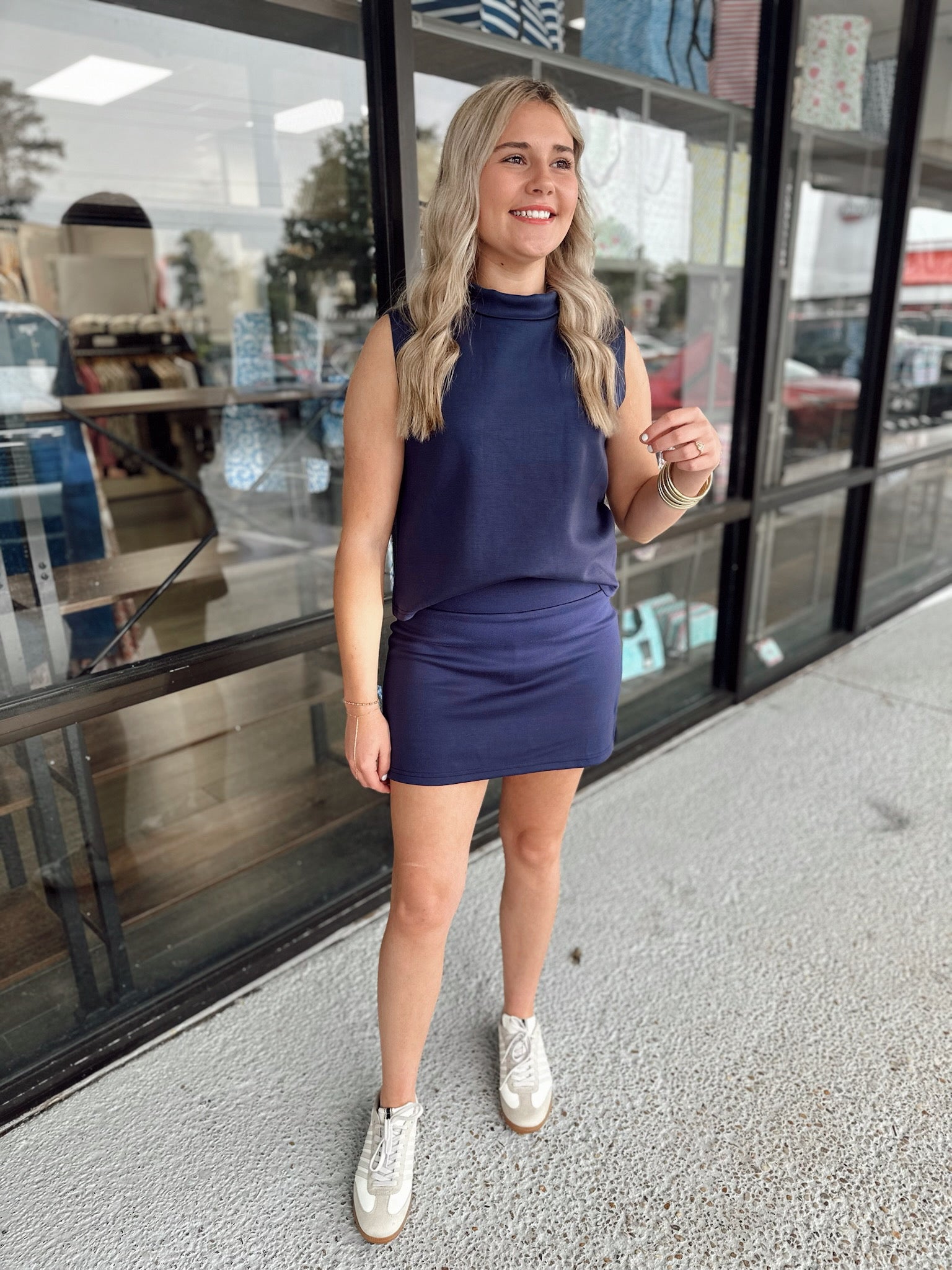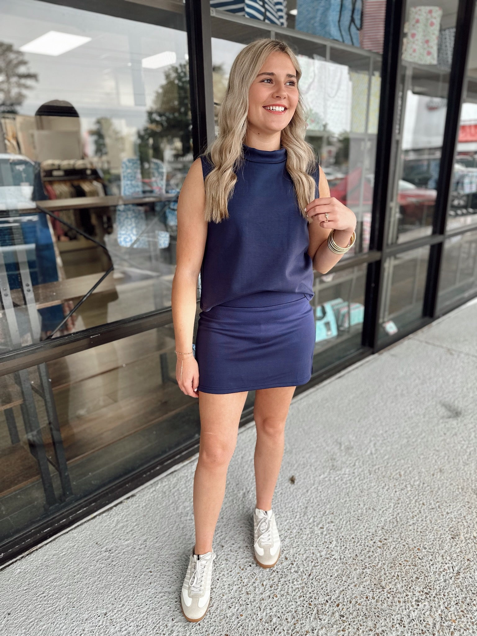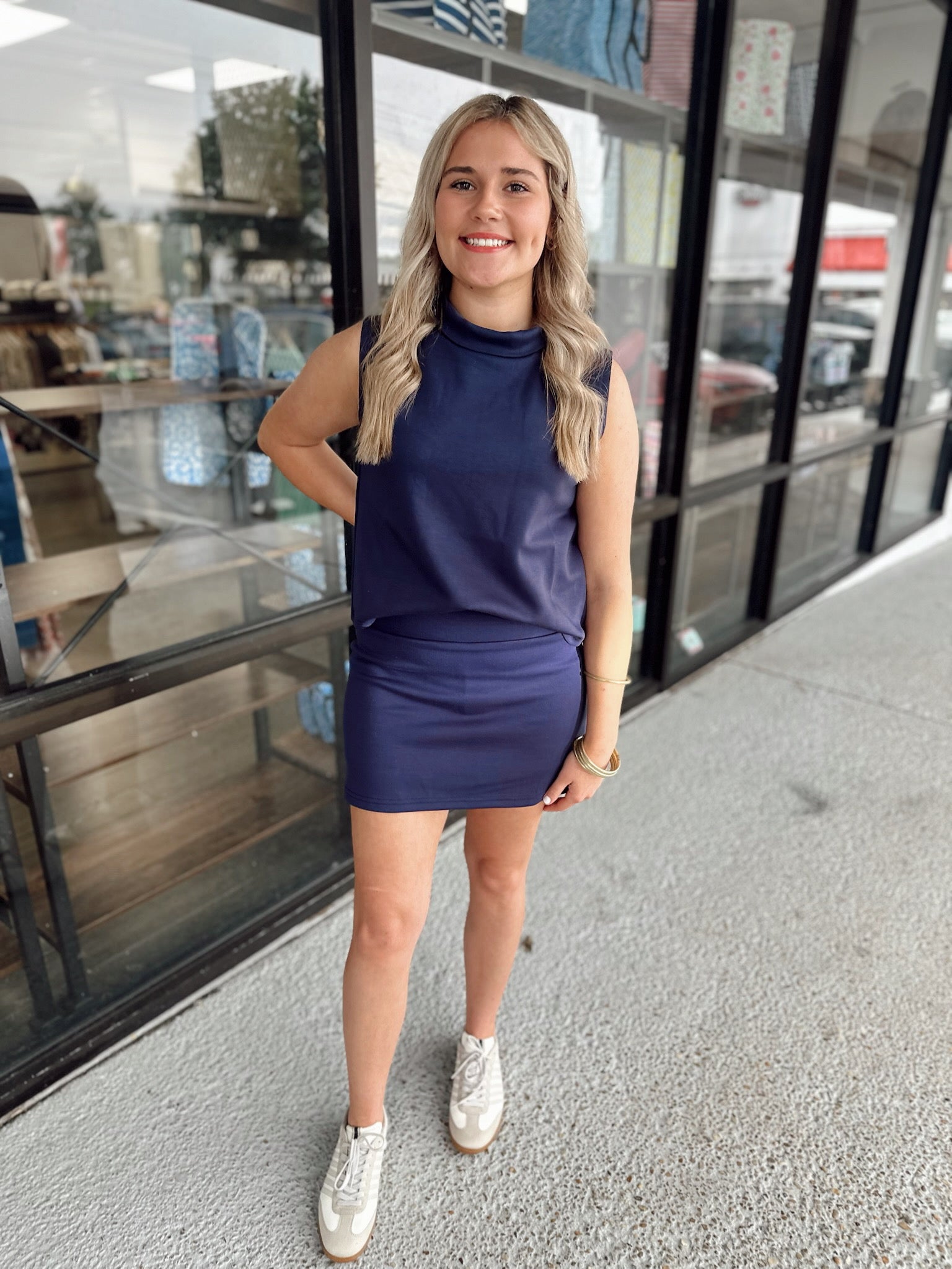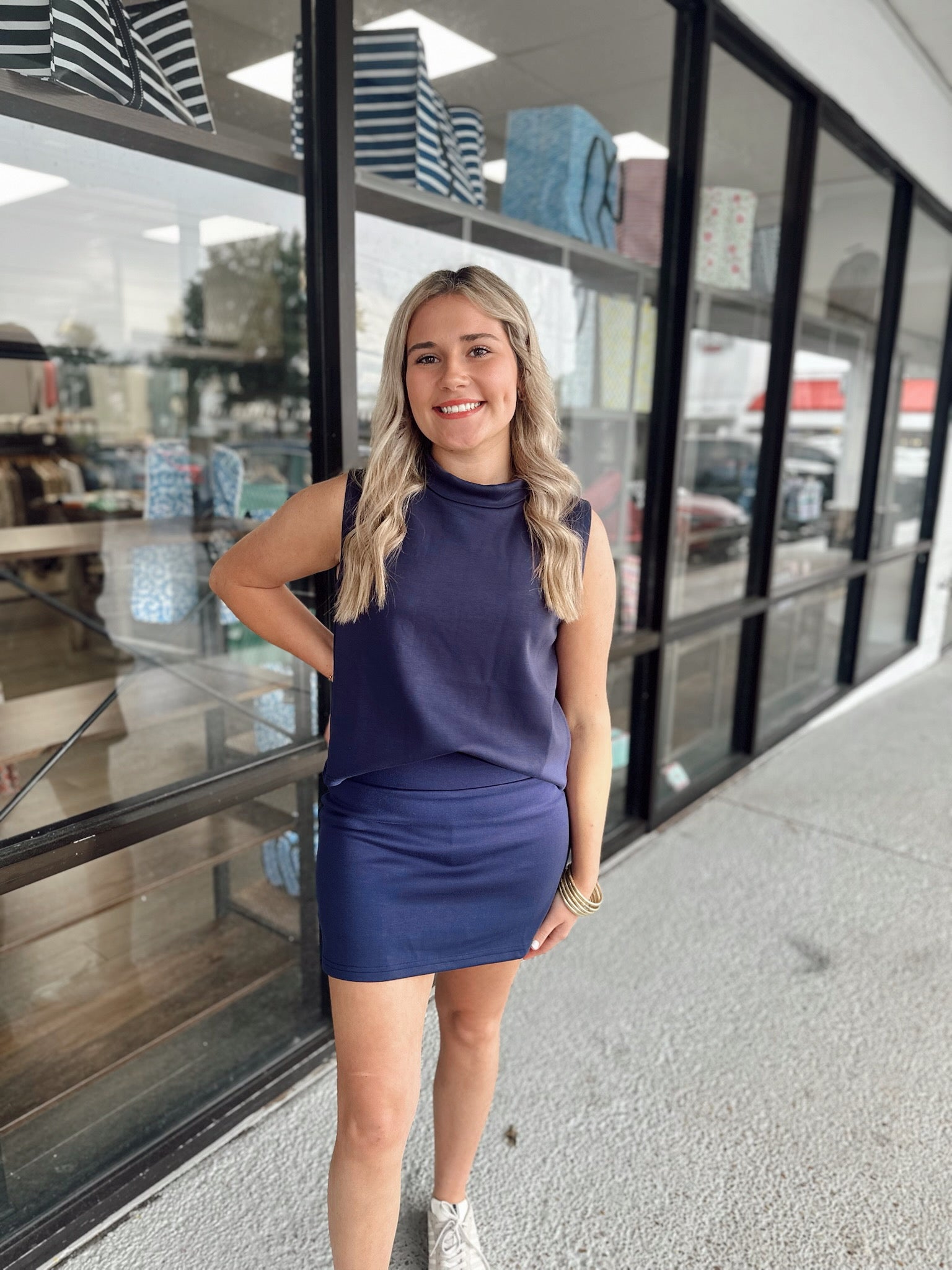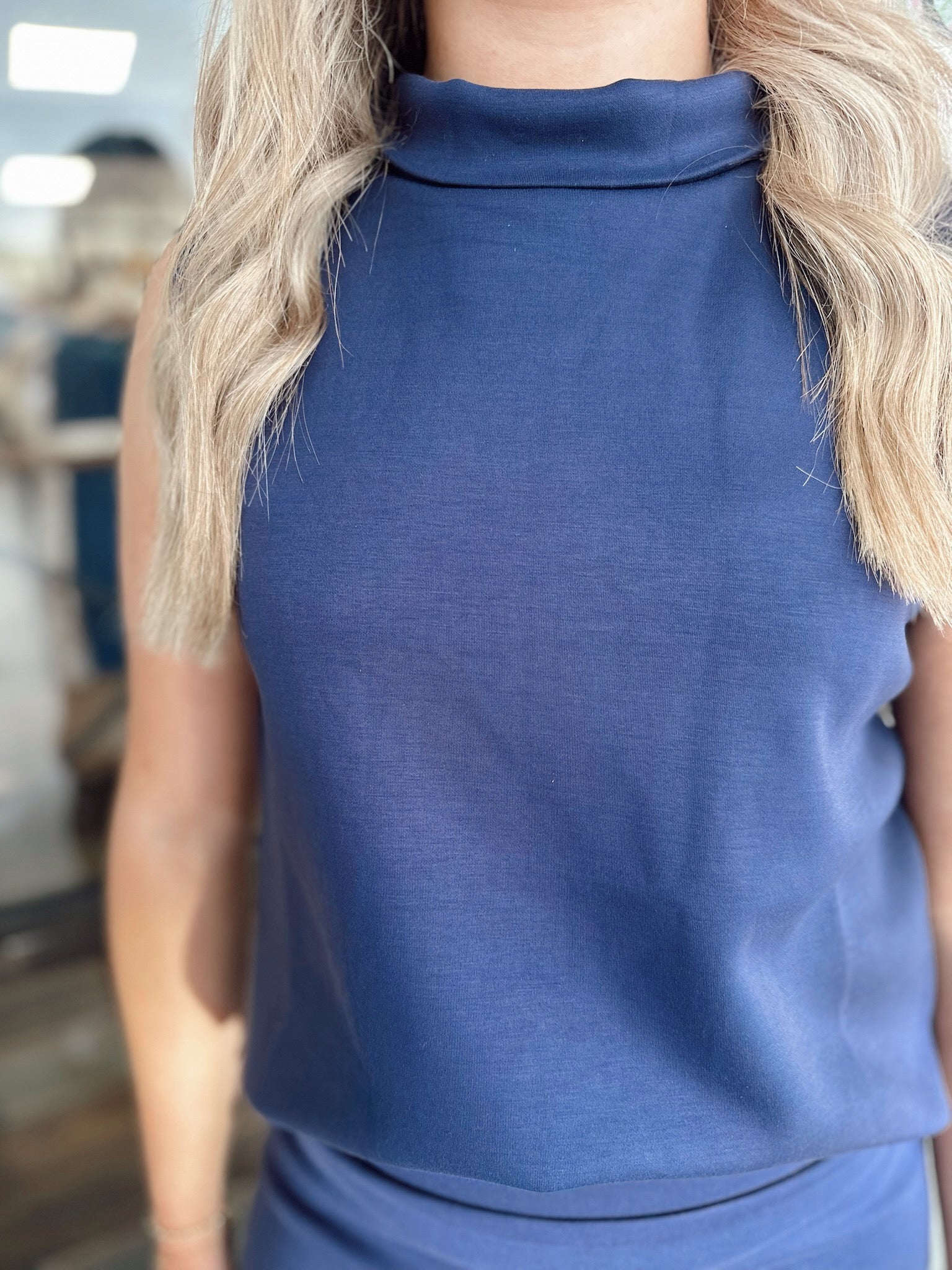 High Neck Tank-Navy