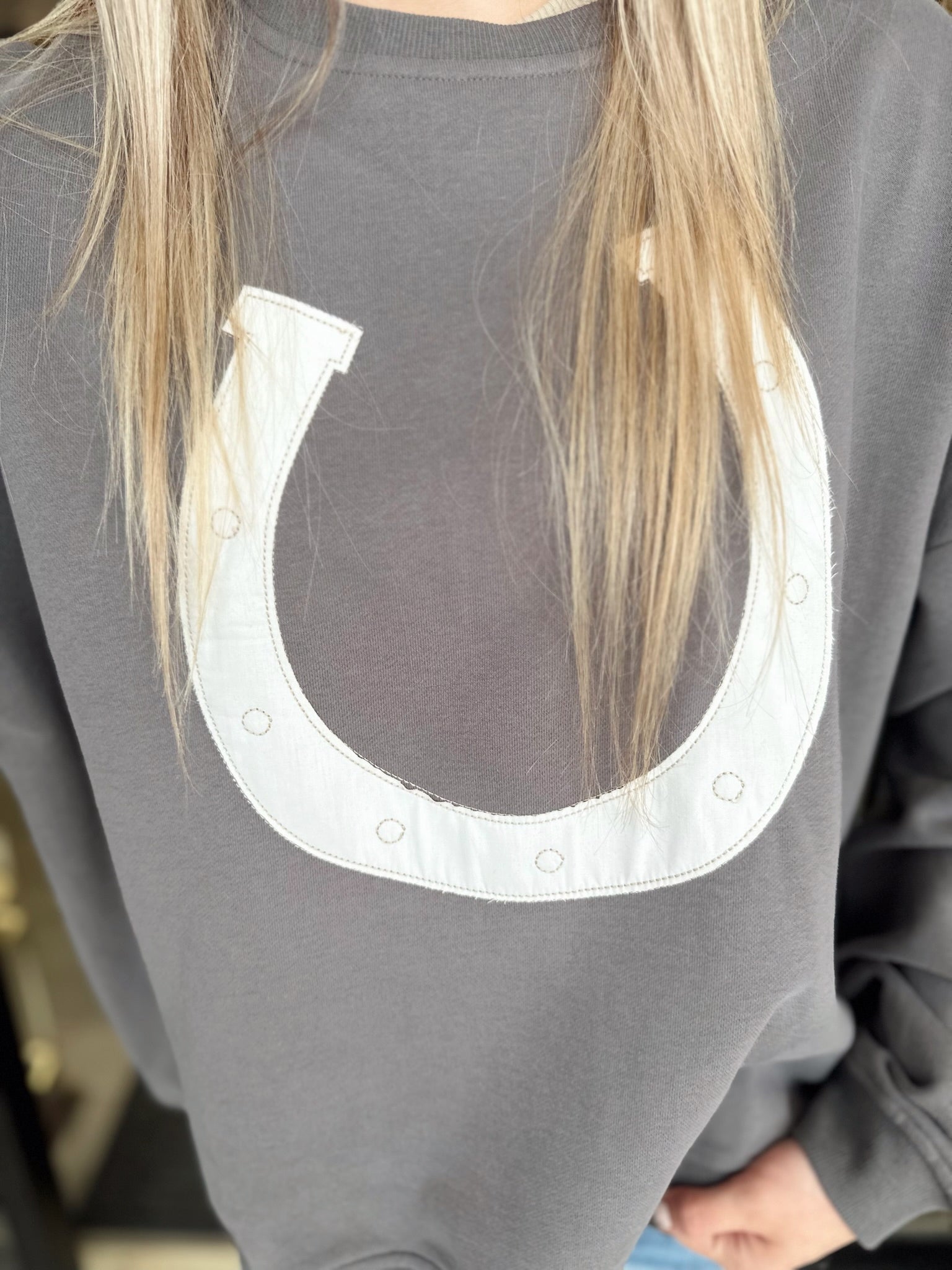 HORSESHOE' FRENCH TERRY PULLOVER SELF: 80% COTTON, 20% POLYESTER CONTRAST: 80% COTTON, 15% POLYESTER, 5% SPANDEX