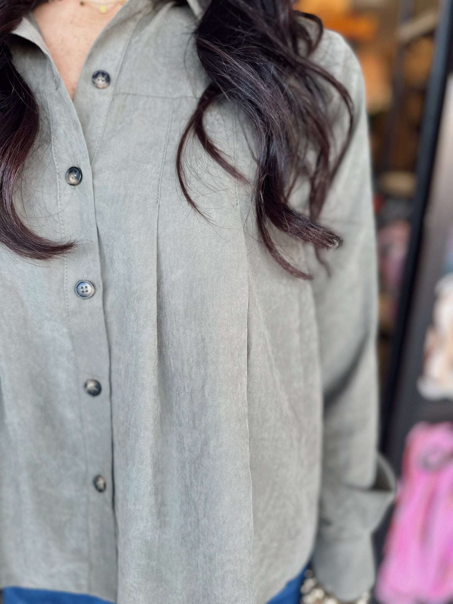 Lightweight woven fabric with a soft drape - Vertical pleat detailing adds texture and shape - Classic point collar and button-up front - Long sleeves with button cuffs for a tailored touch - Easy fit perfect for tucking or wearing loose