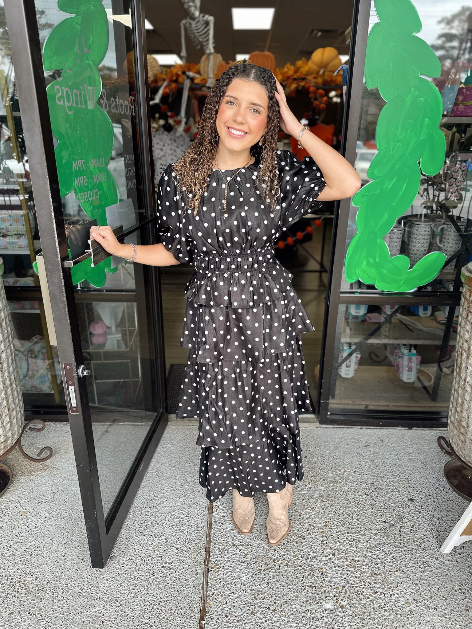 Matching black and white polka dot set