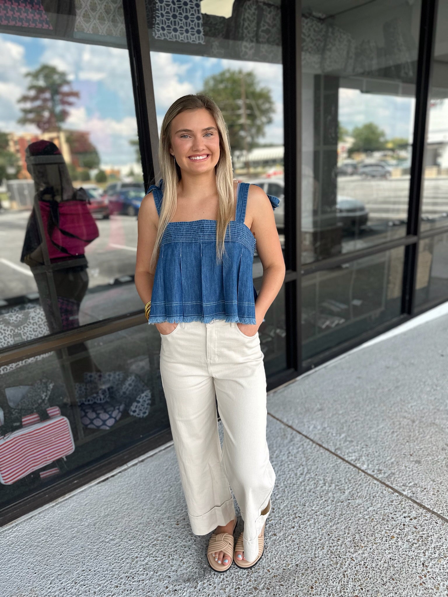 Details: pleated crop top with tie straps