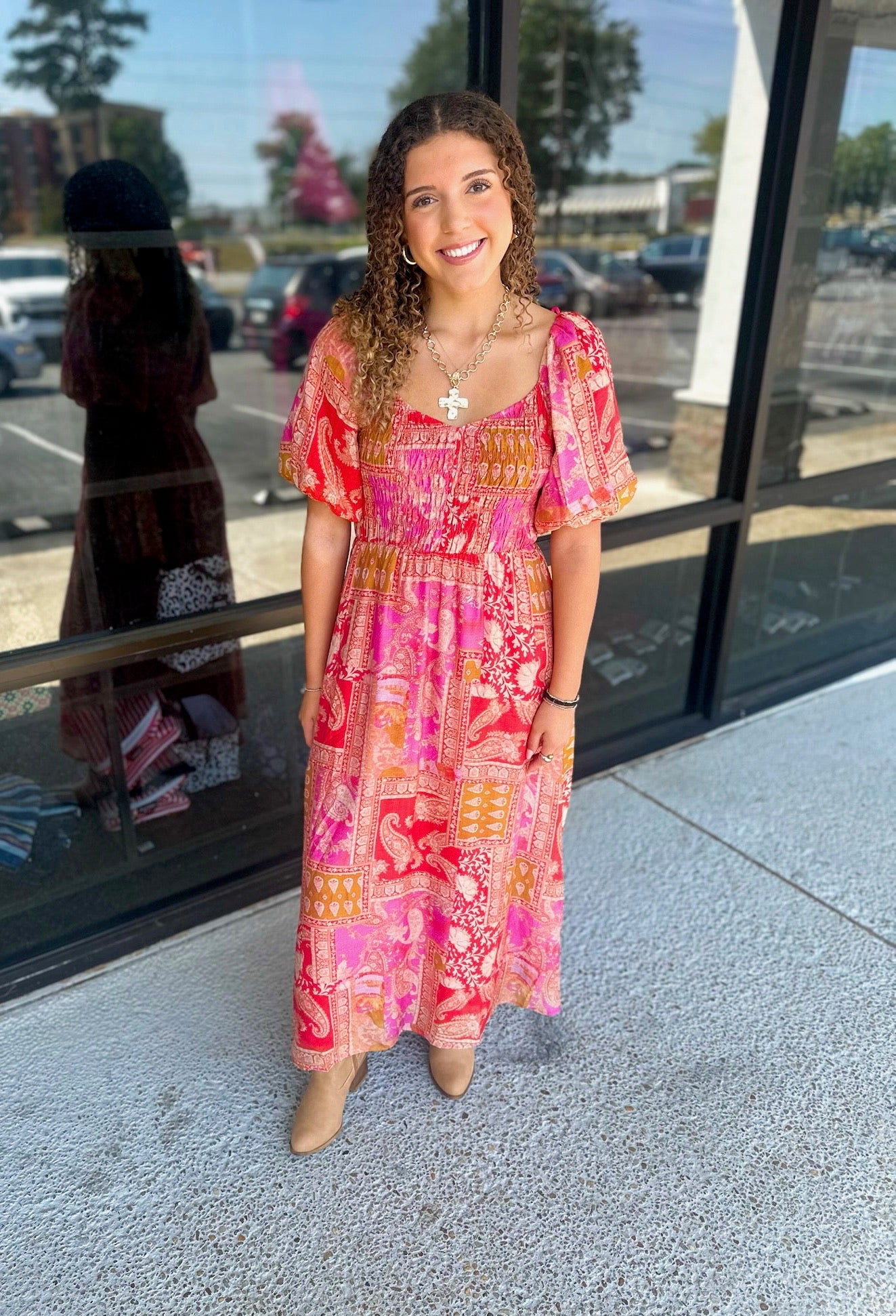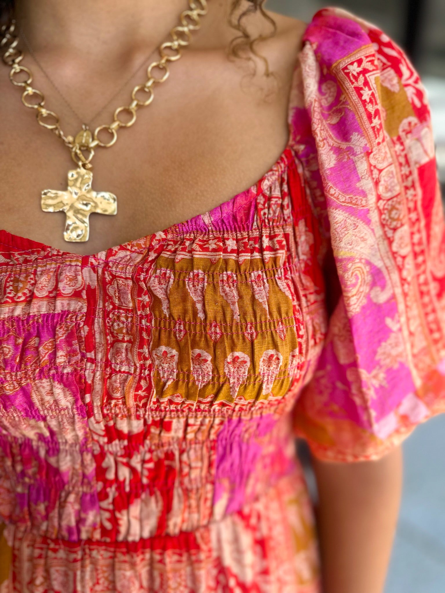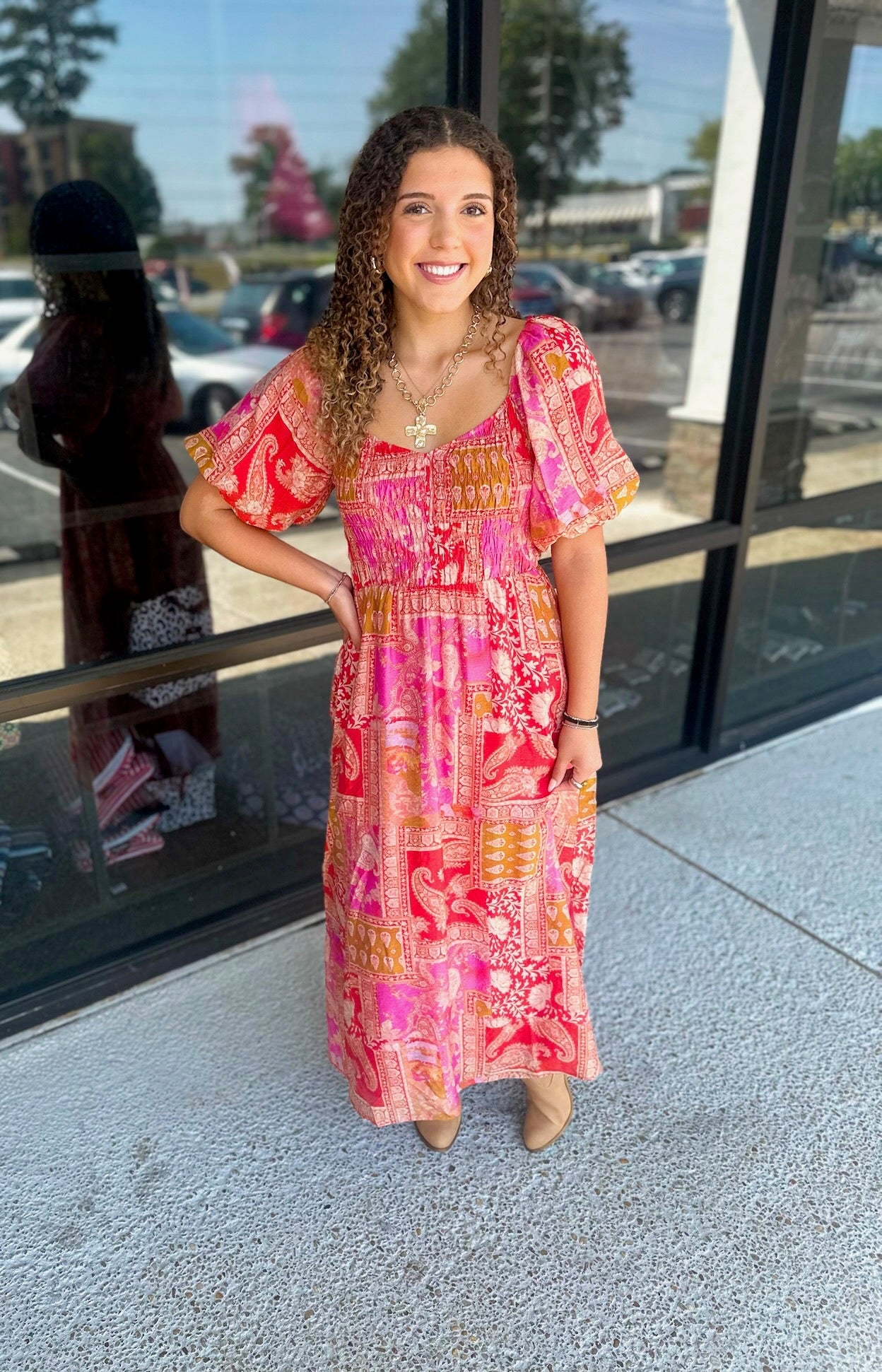 Mediterranean Majesty Puff Sleeve Maxi Dress