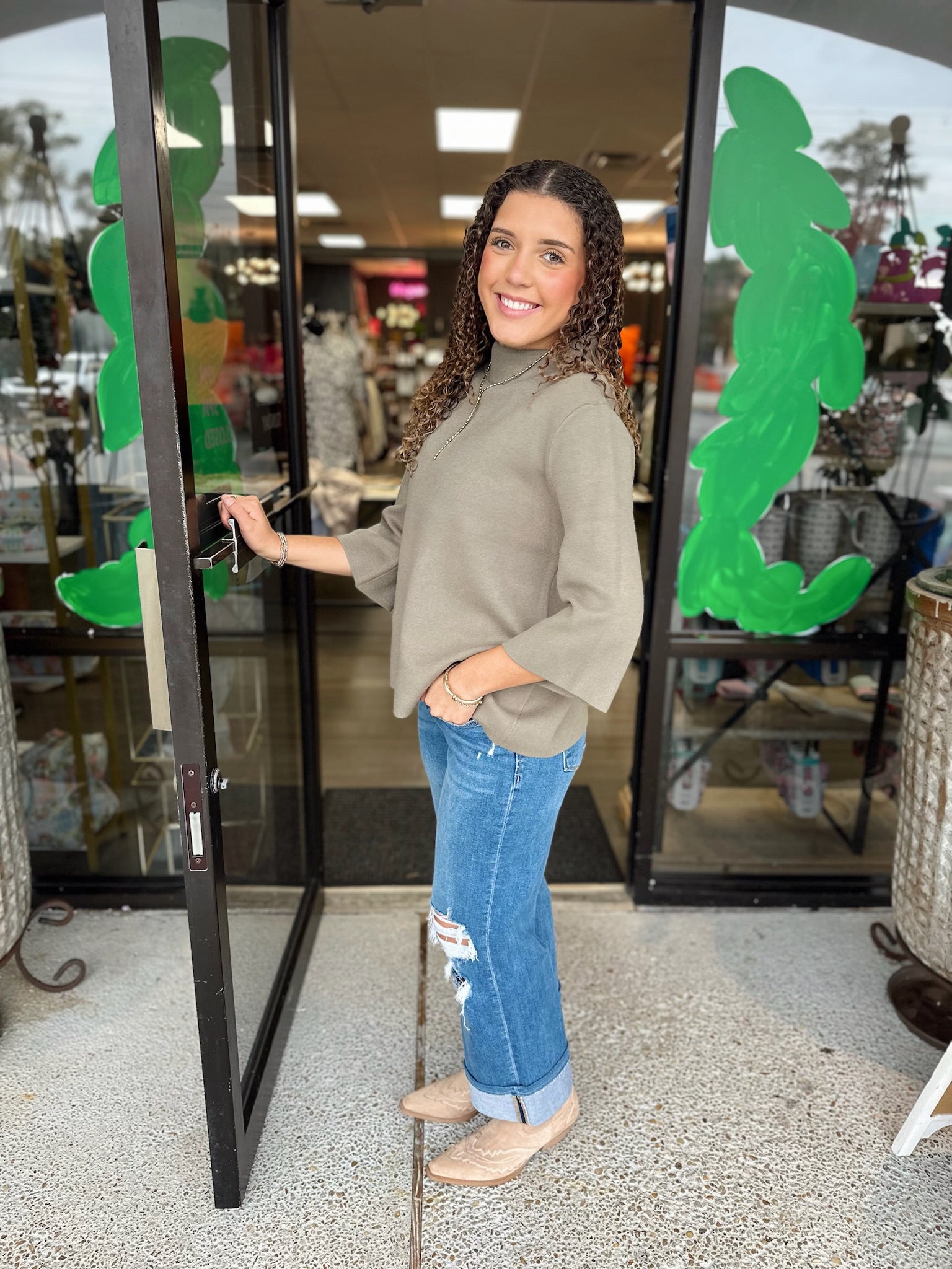 MOCK NECK PULL OVER SWEATER/BELL SLEEVE