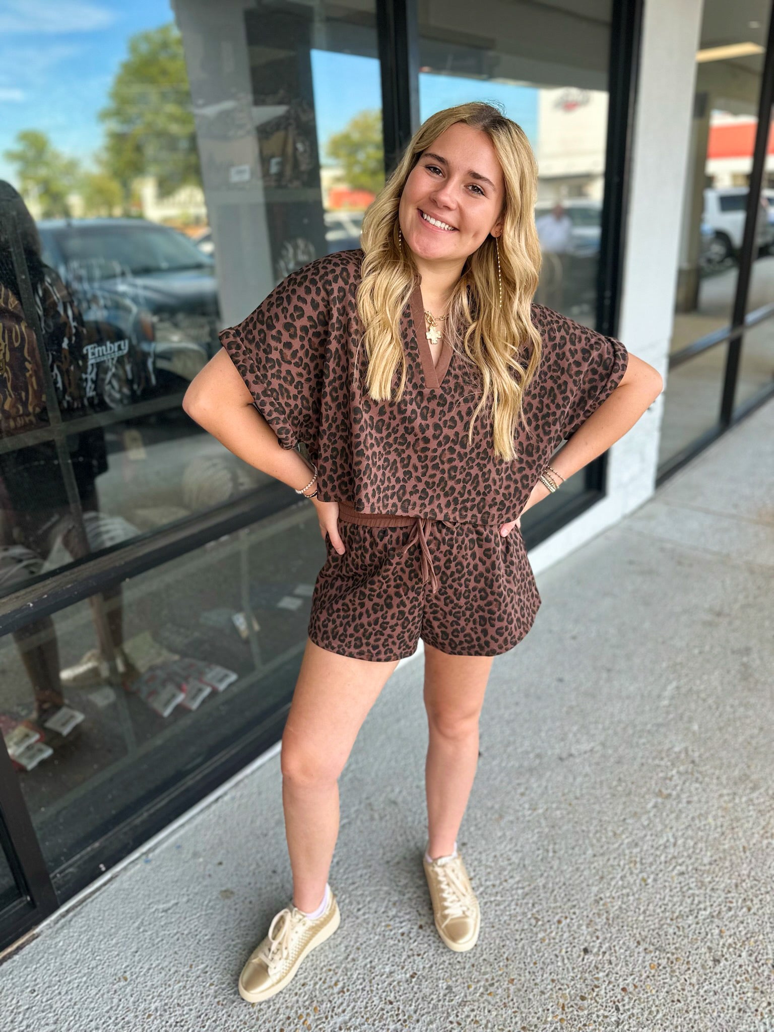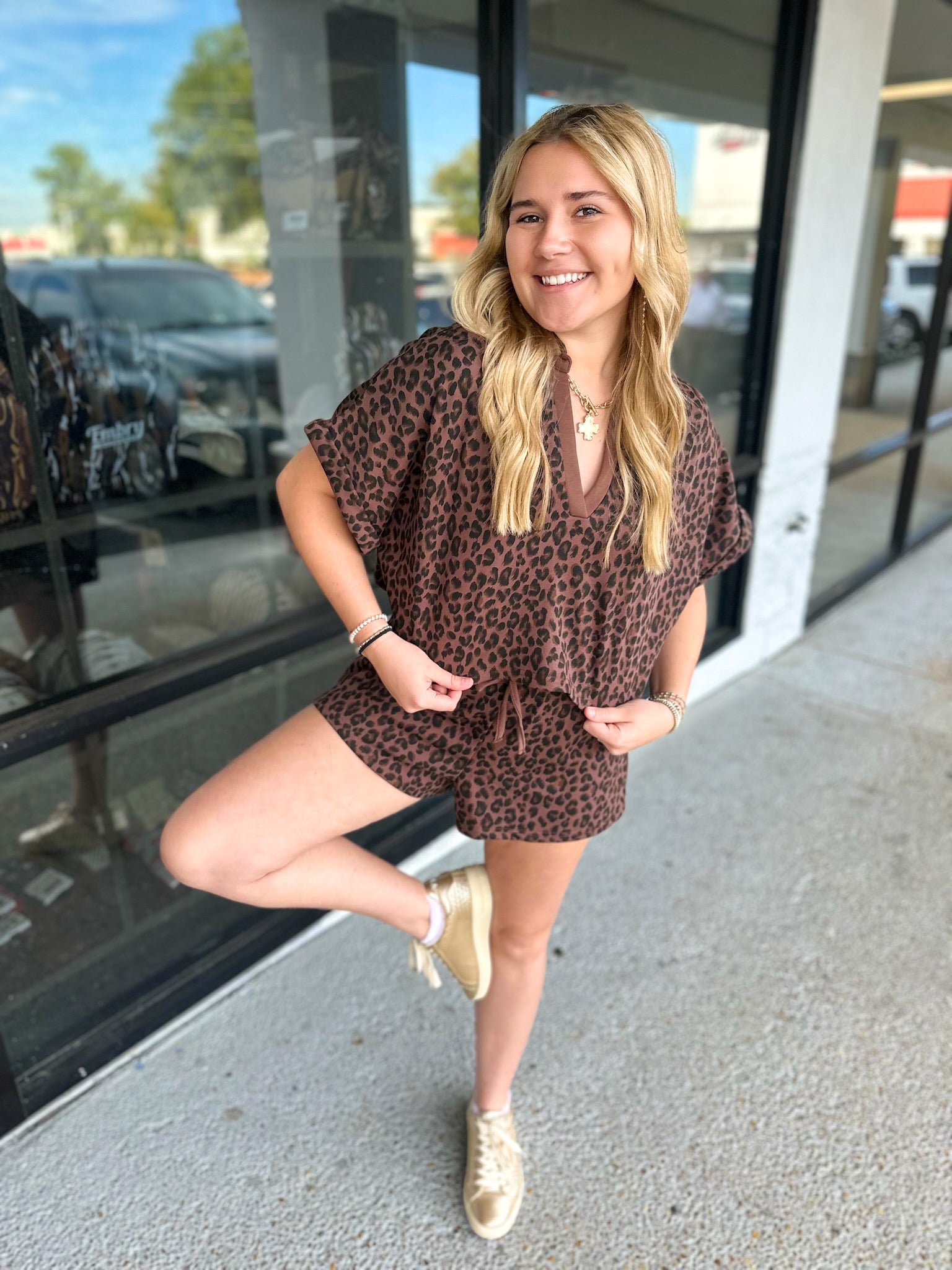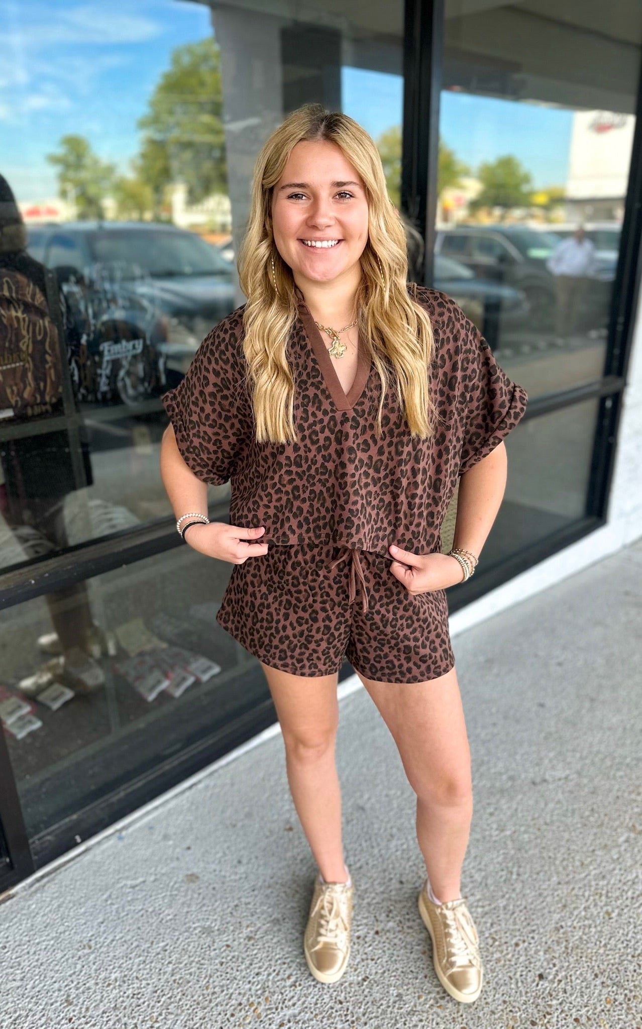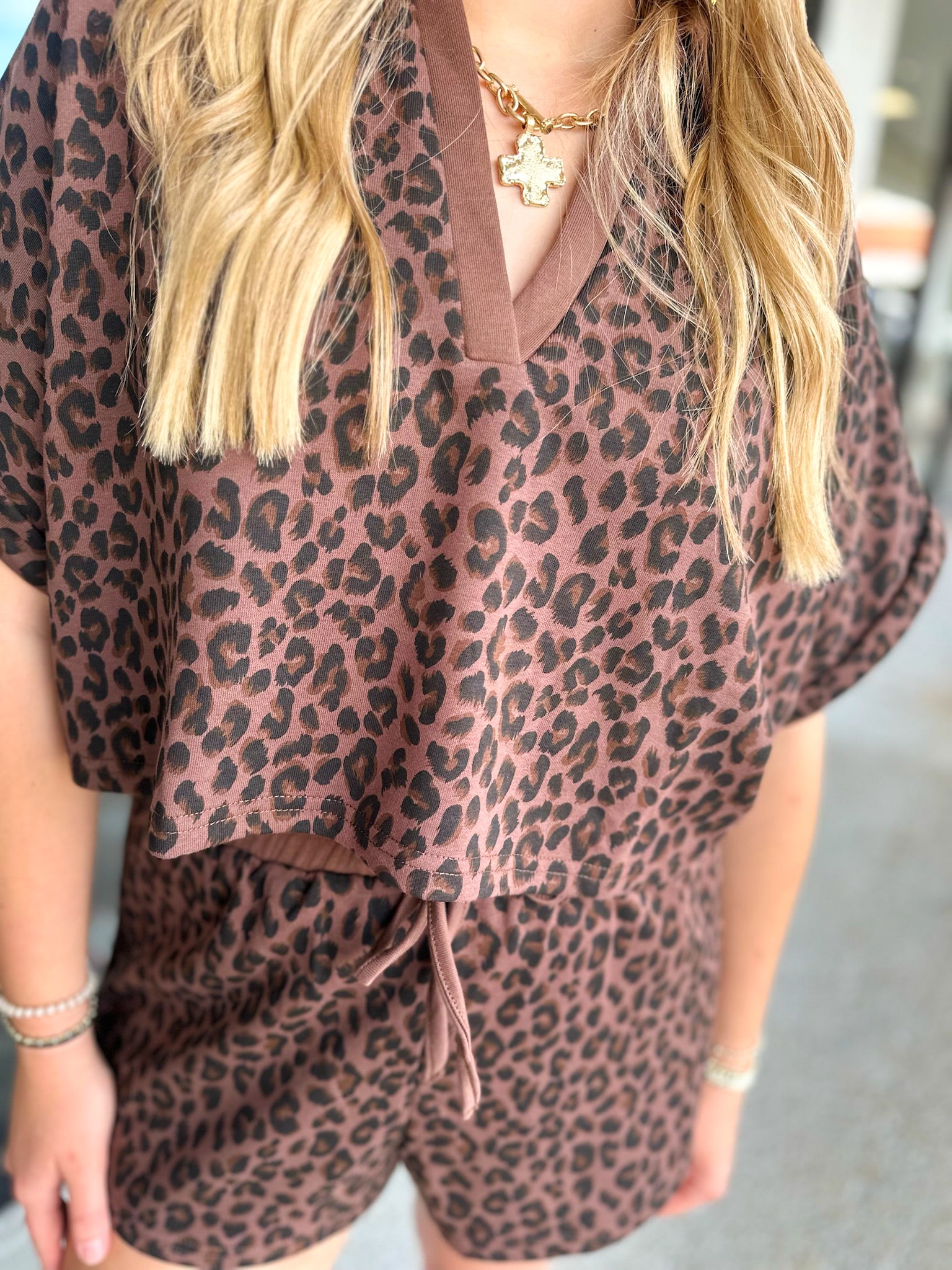 LEOPARD CROPPED SHORT SLEEVE AND SHORTS SET