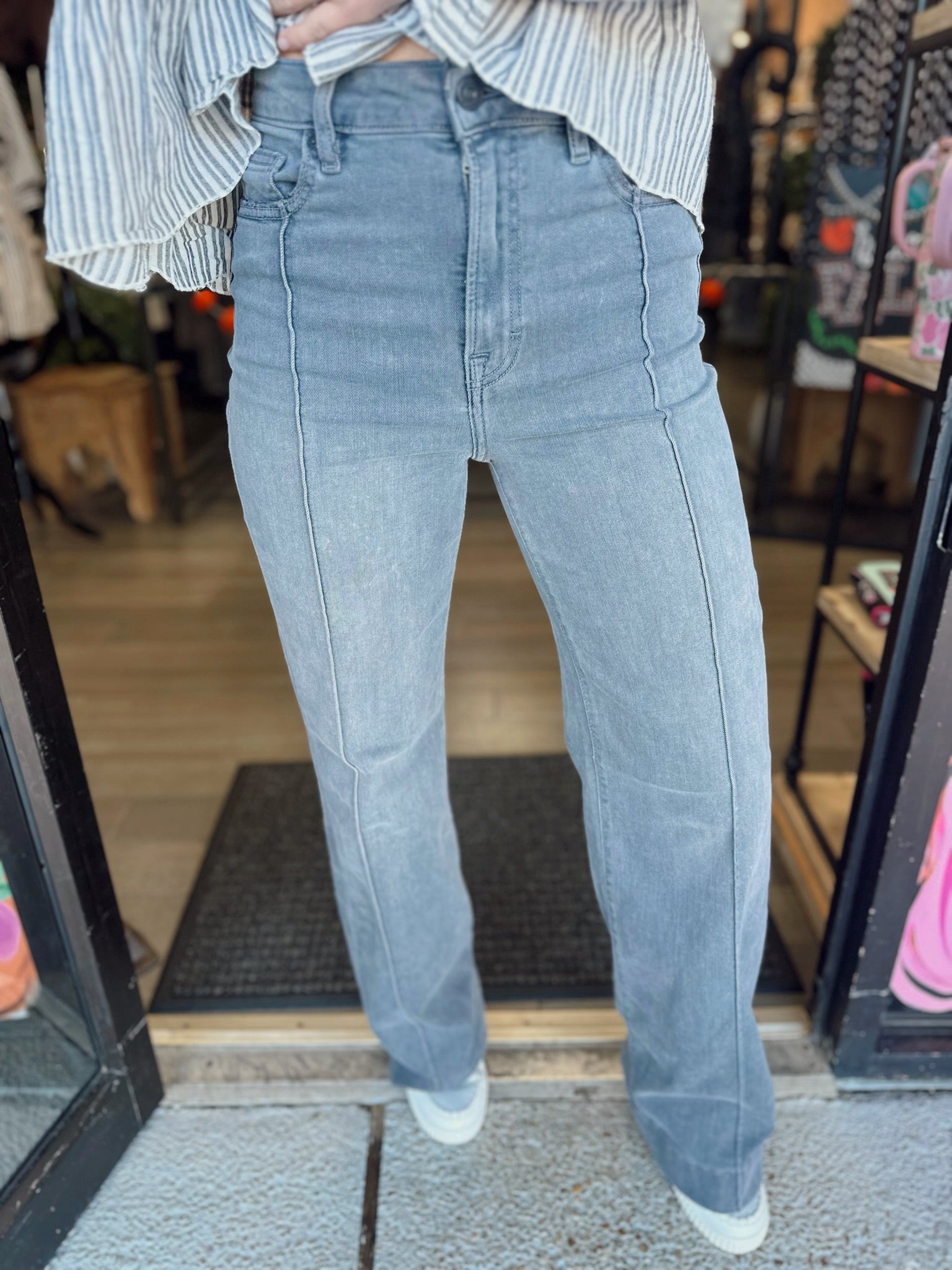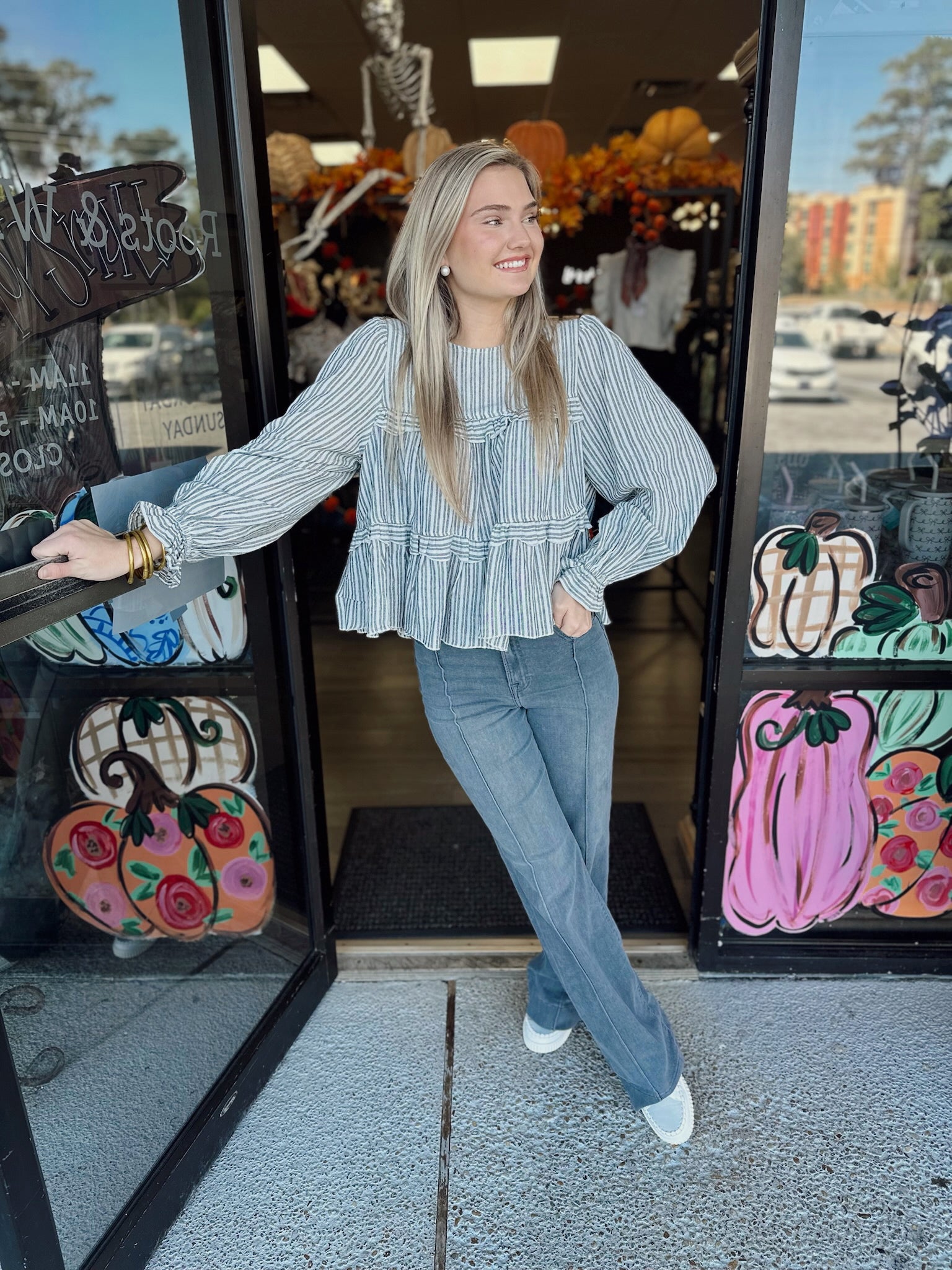 Striped pattern ruffle detail blouse