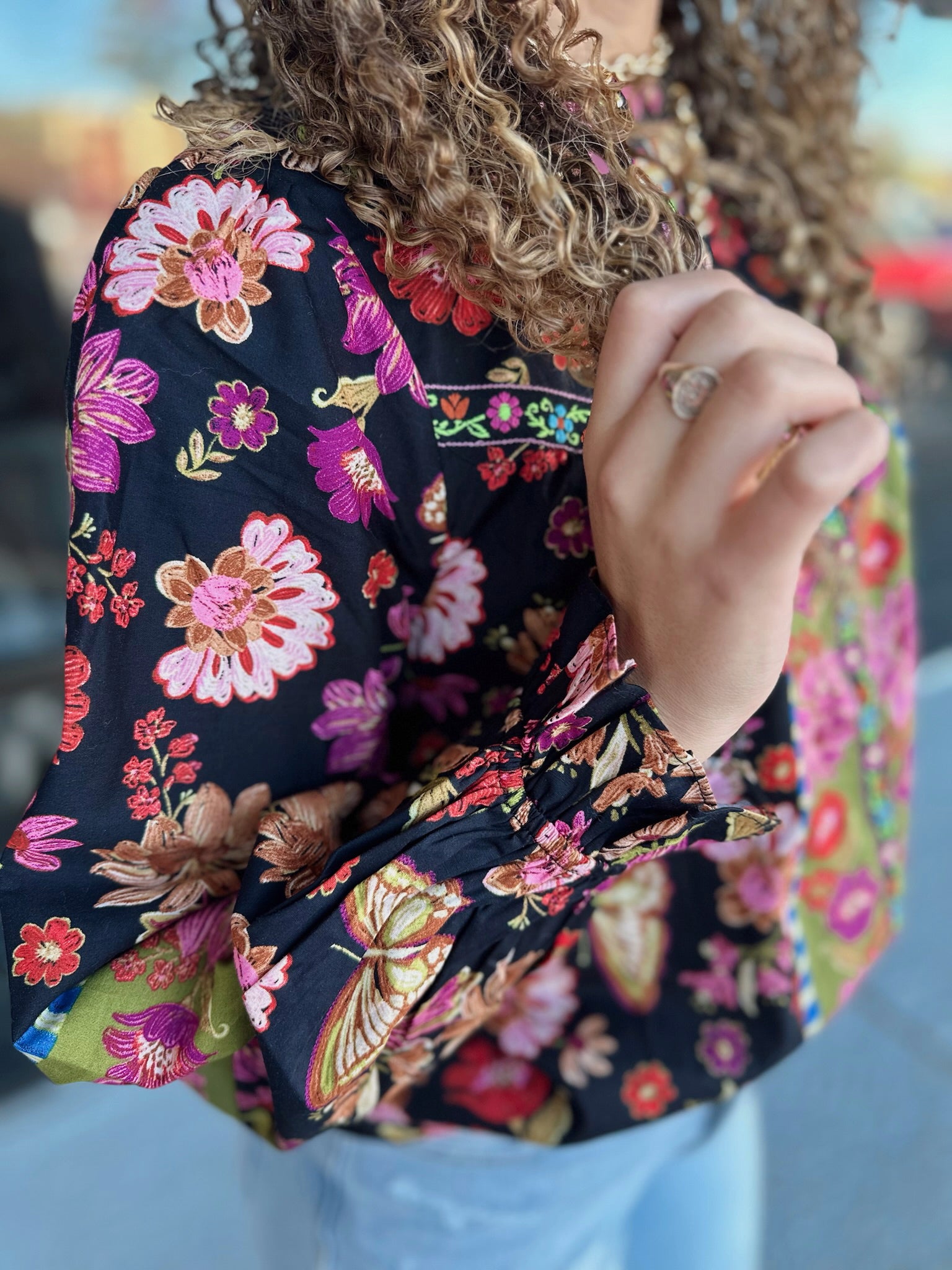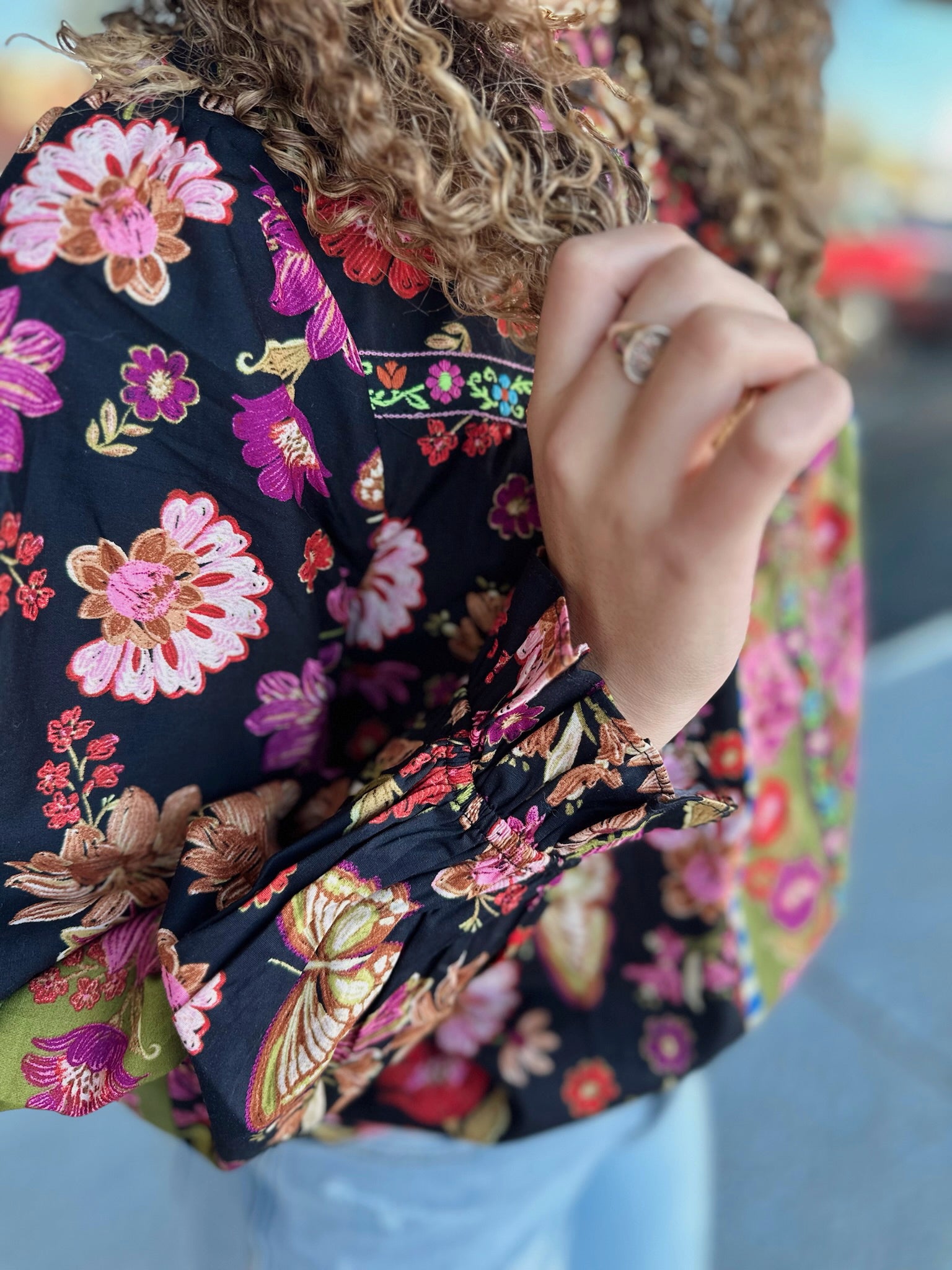 + Long balloon sleeves with ruffled elastic cuffs