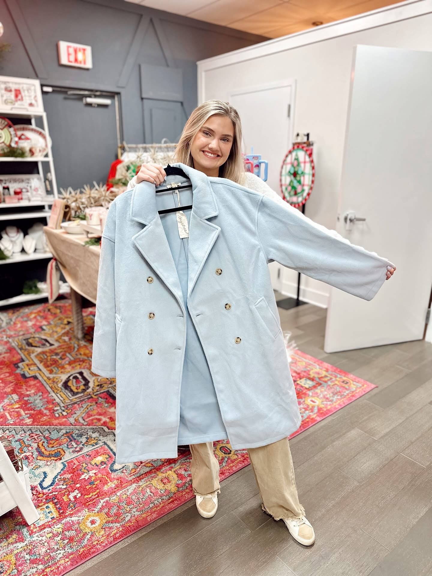 Double Breasted Dolman Sleeve Coat Button trim closure Side pockets Knee length