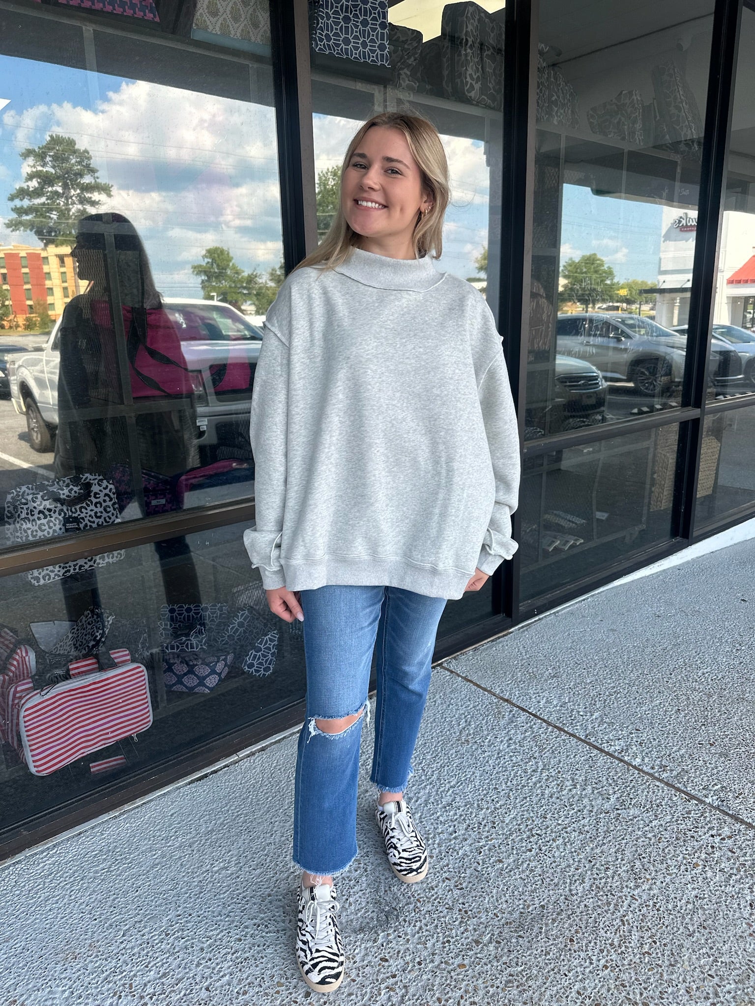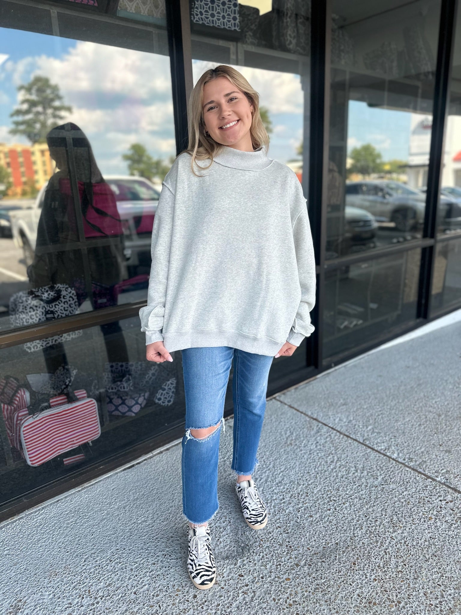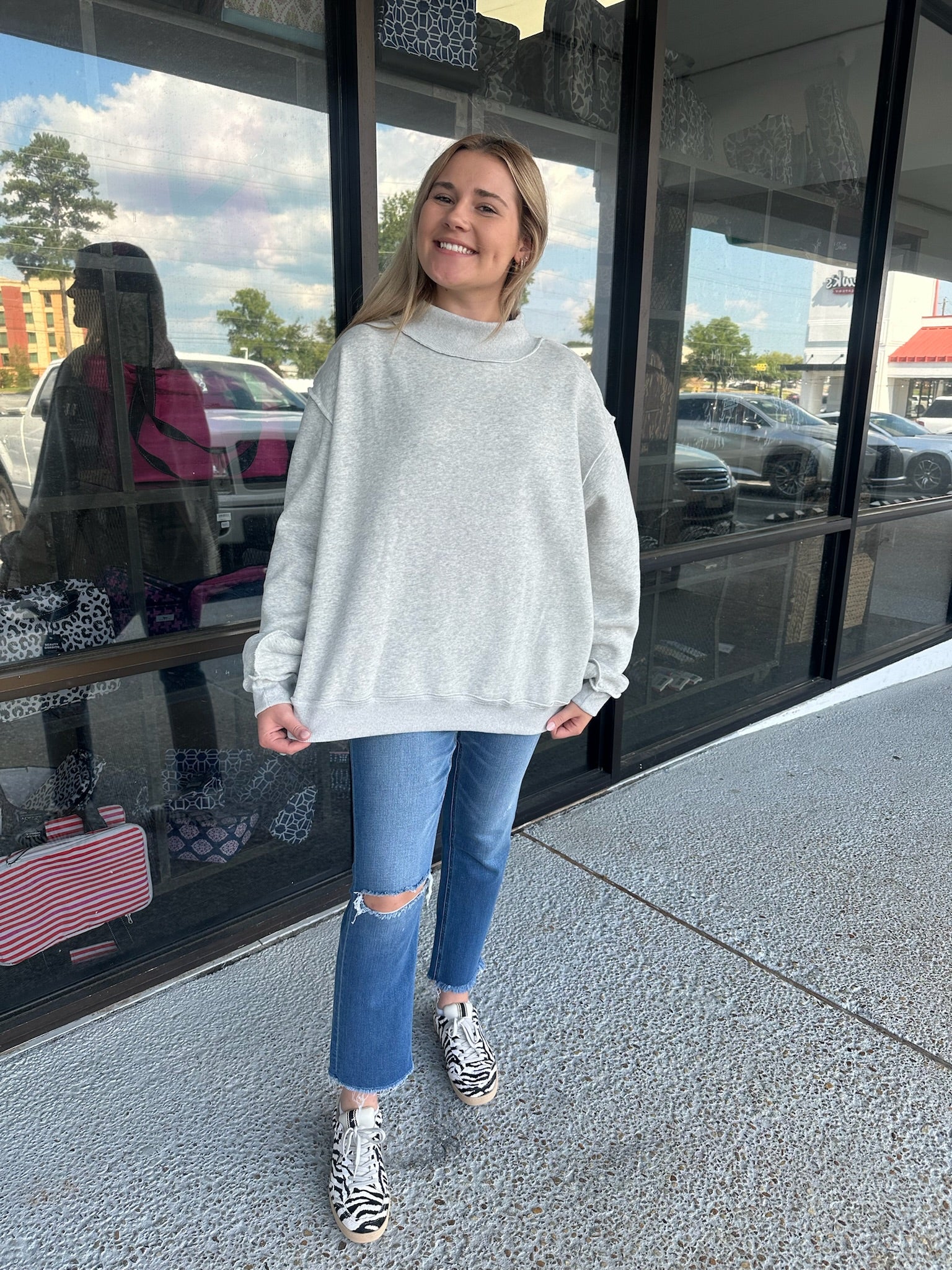 PILATES & YOGA' Print Reversible Mockneck Sweatshirt - Mock-neck - Drop shoulder, long sleeves - Softest cozy fleece - Oversized fit - Rib banded hemline and cuffs - The reversible design lets you switch up your style.