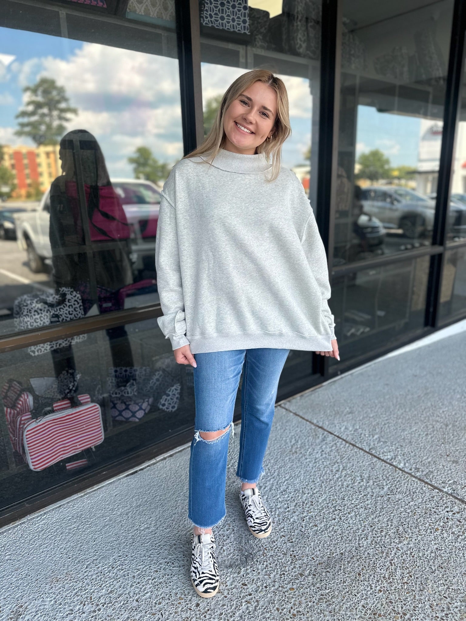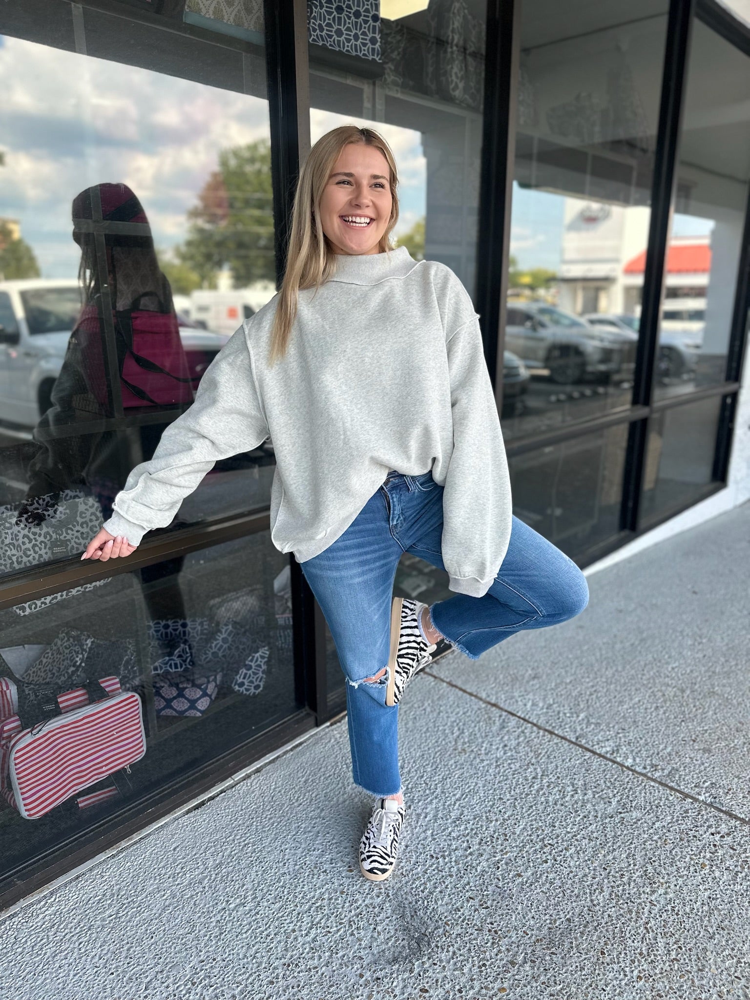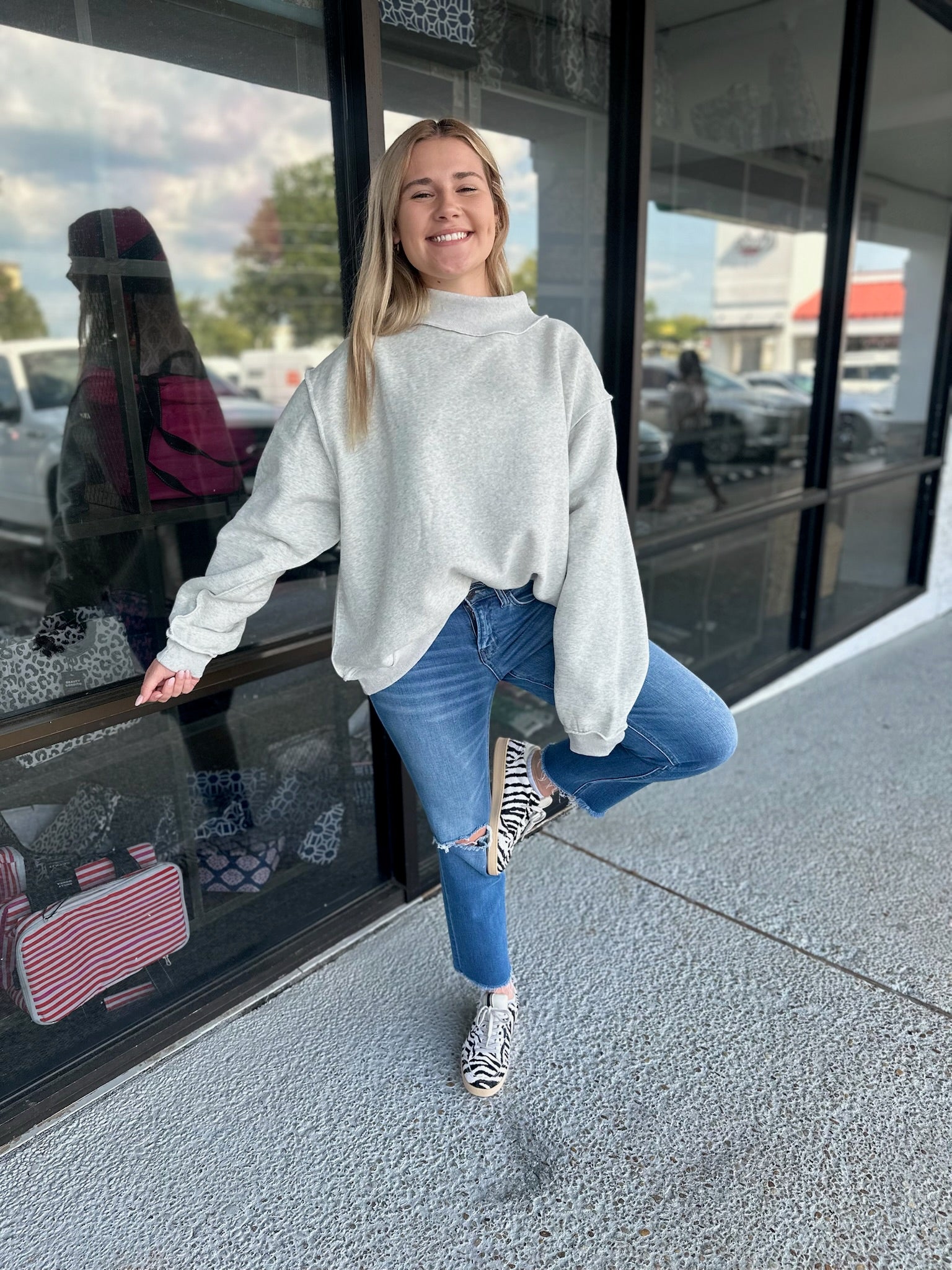 PILATES & YOGA' Print Reversible Mockneck Sweatshirt - Mock-neck - Drop shoulder, long sleeves - Softest cozy fleece - Oversized fit - Rib banded hemline and cuffs - The reversible design lets you switch up your style.