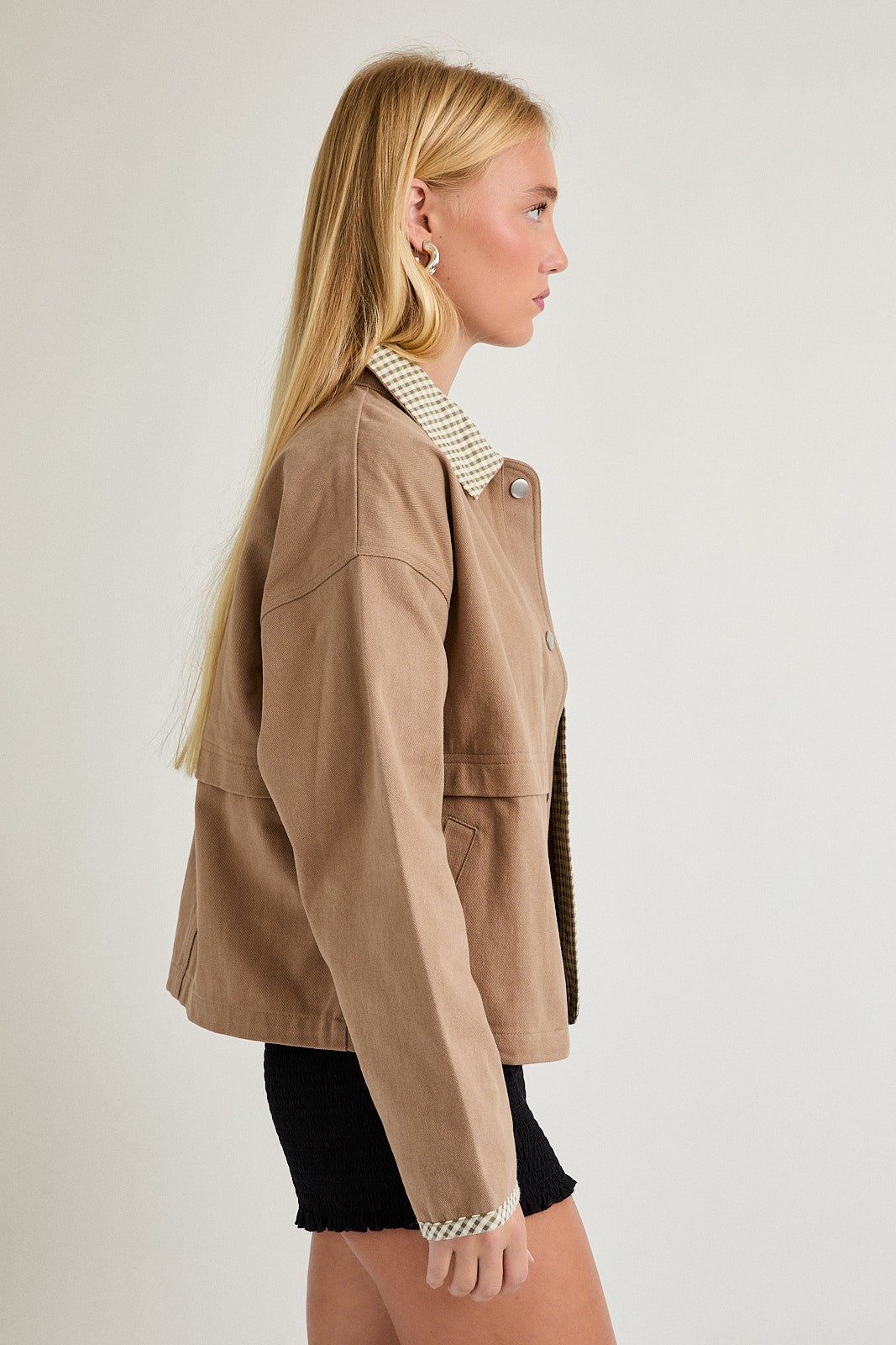 Shacket With Gingham Contrast Detailing
