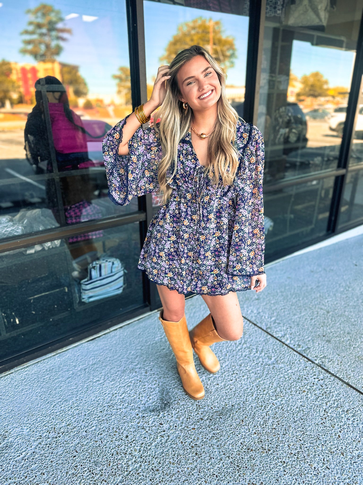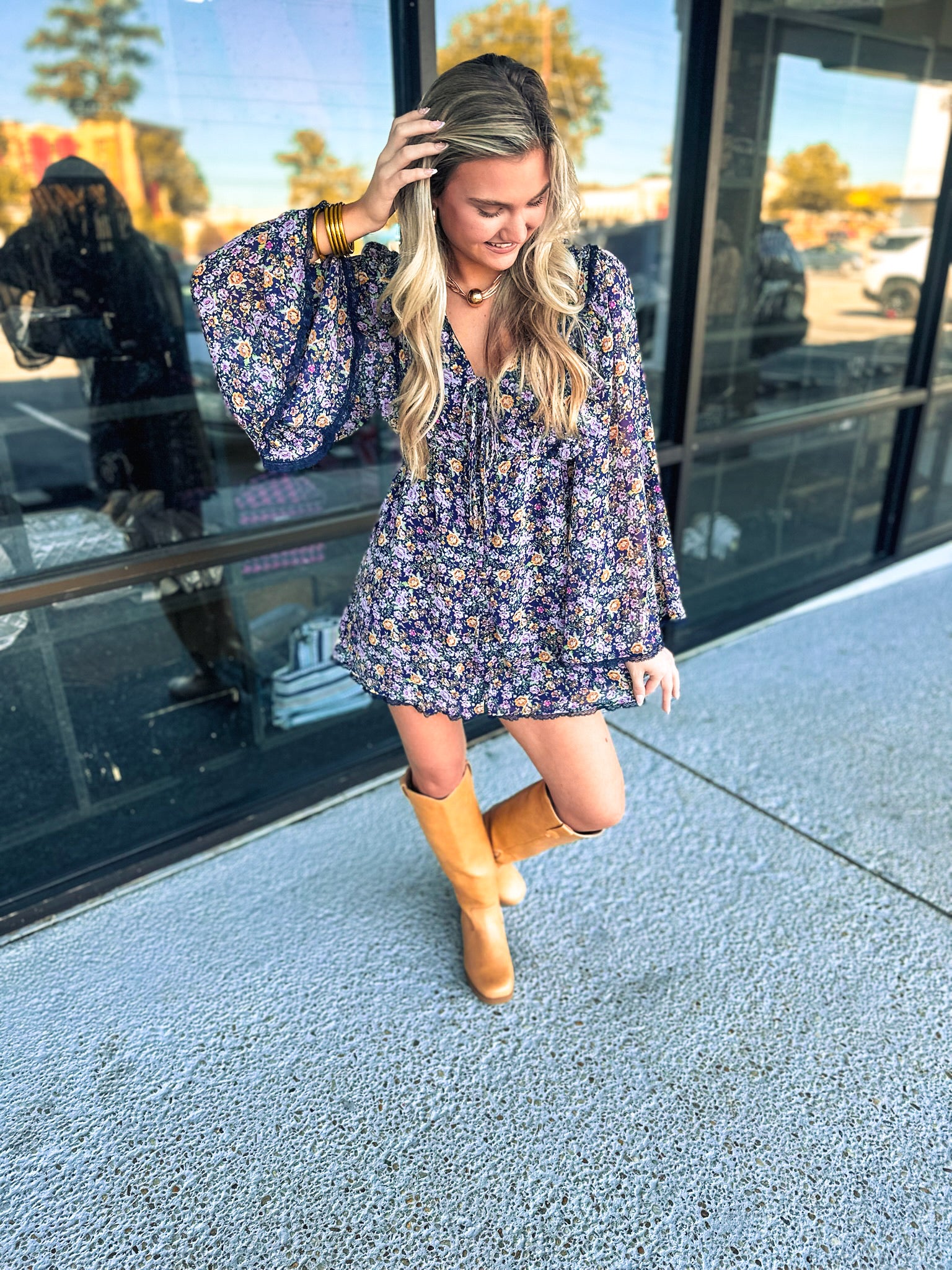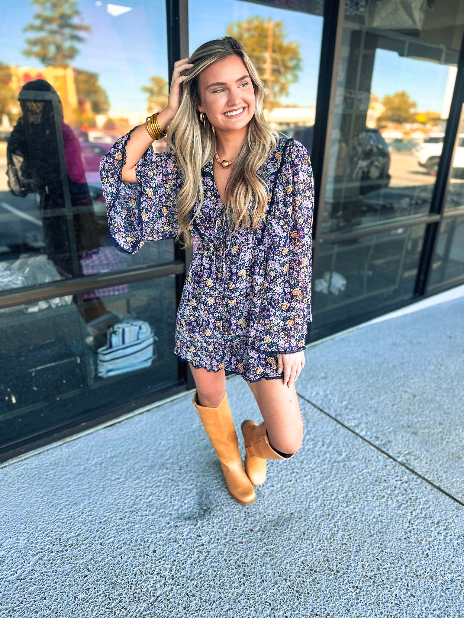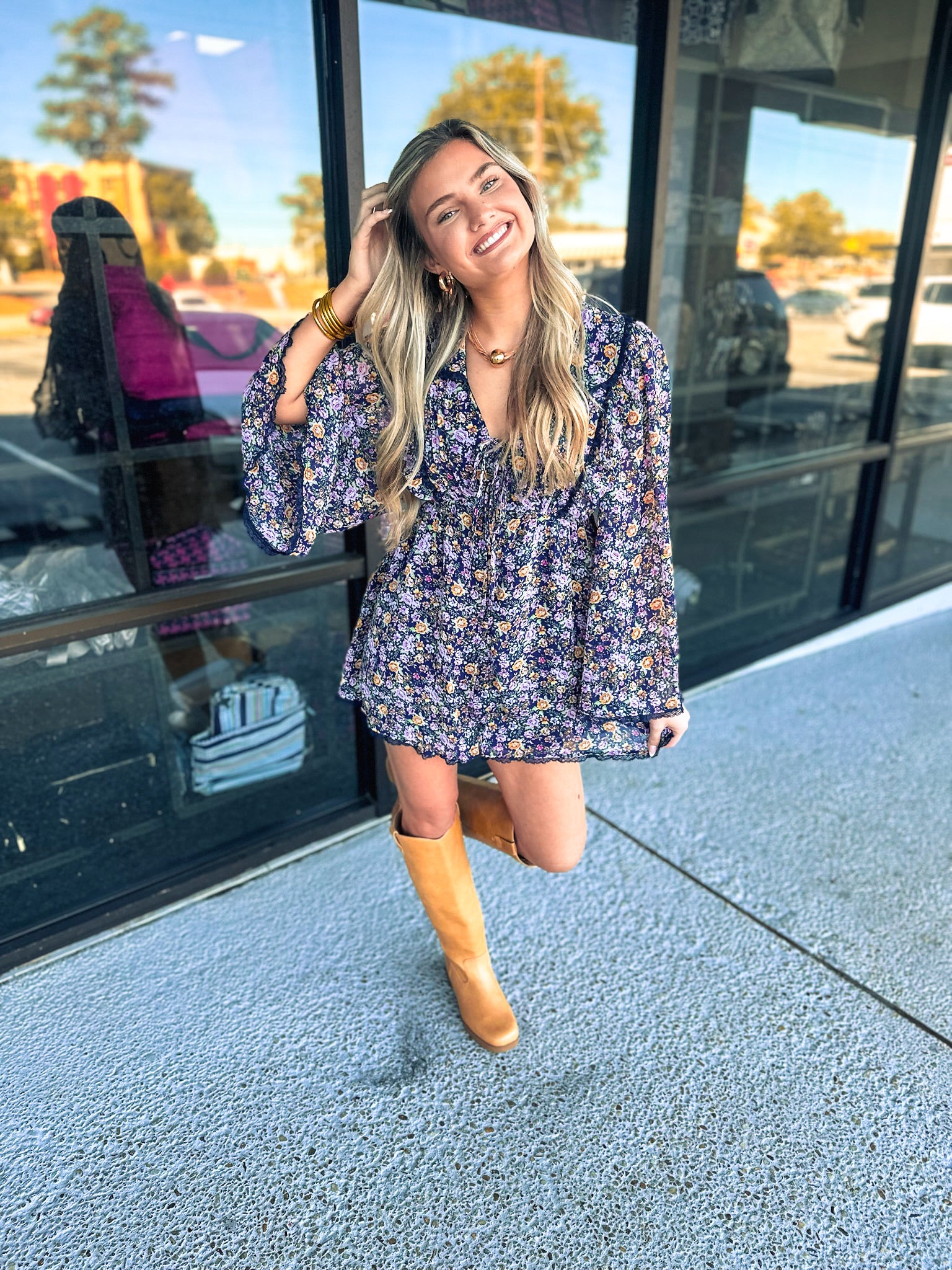 Sheer Floral Chiffon: Lightweight woven fabric with a vintage-inspired rose print - Full Lining: Body is lined for comfortable coverage, sleeves remain sheer for flowy movement - Bell Sleeves: Dramatic wide sleeves create a soft, romantic silhouette - Lace Trim Details: Scalloped lace edges at the collar, hem, and sleeves add a delicate finish - Drawstring Waist & Bust: Adjustable tie at the bust for a flattering shape with subtle gathering - Button-Front Closure: Functional buttons allow for flexible styling