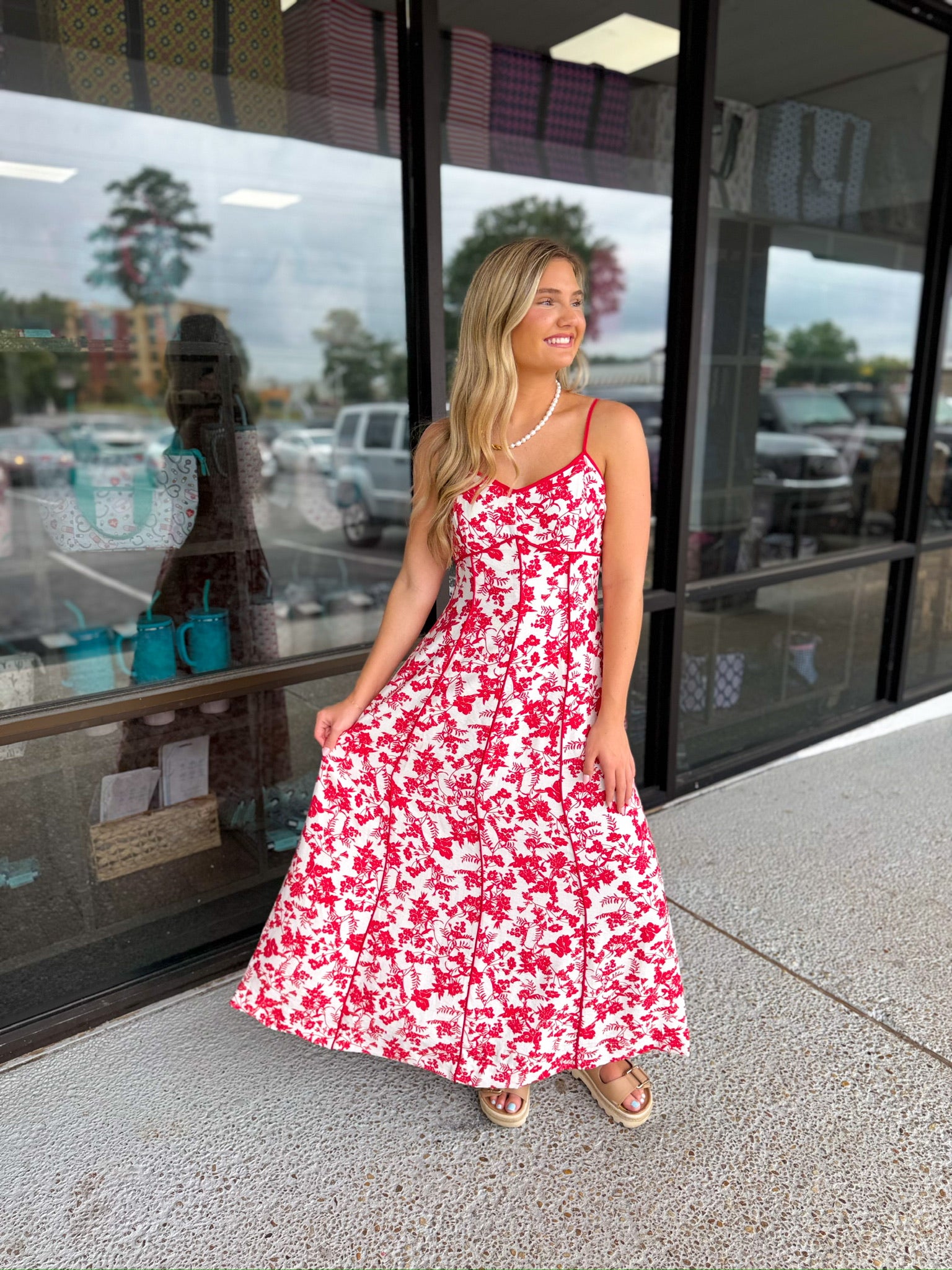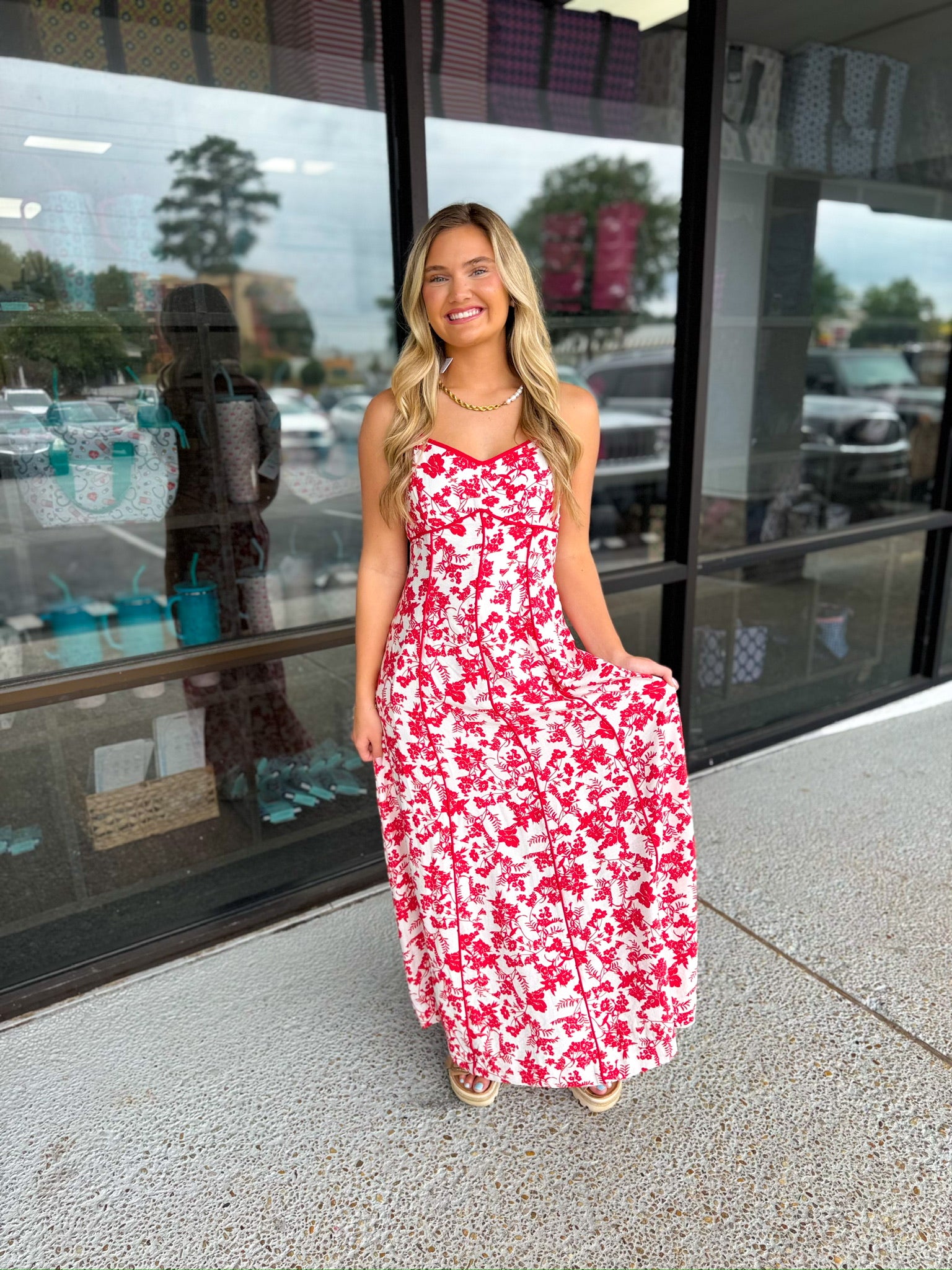Red Floral Maxi Dress (SOLD OUT WITH VENDOR SO NO RESTOCKING)