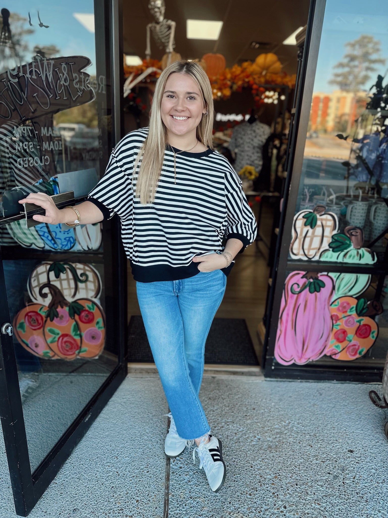 Striped knit top with seam detail.