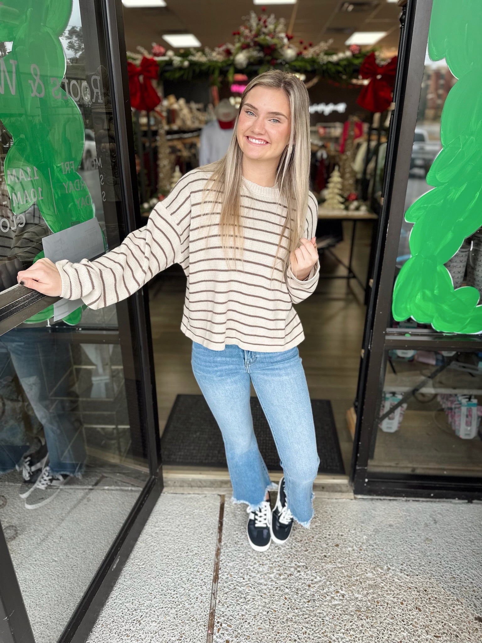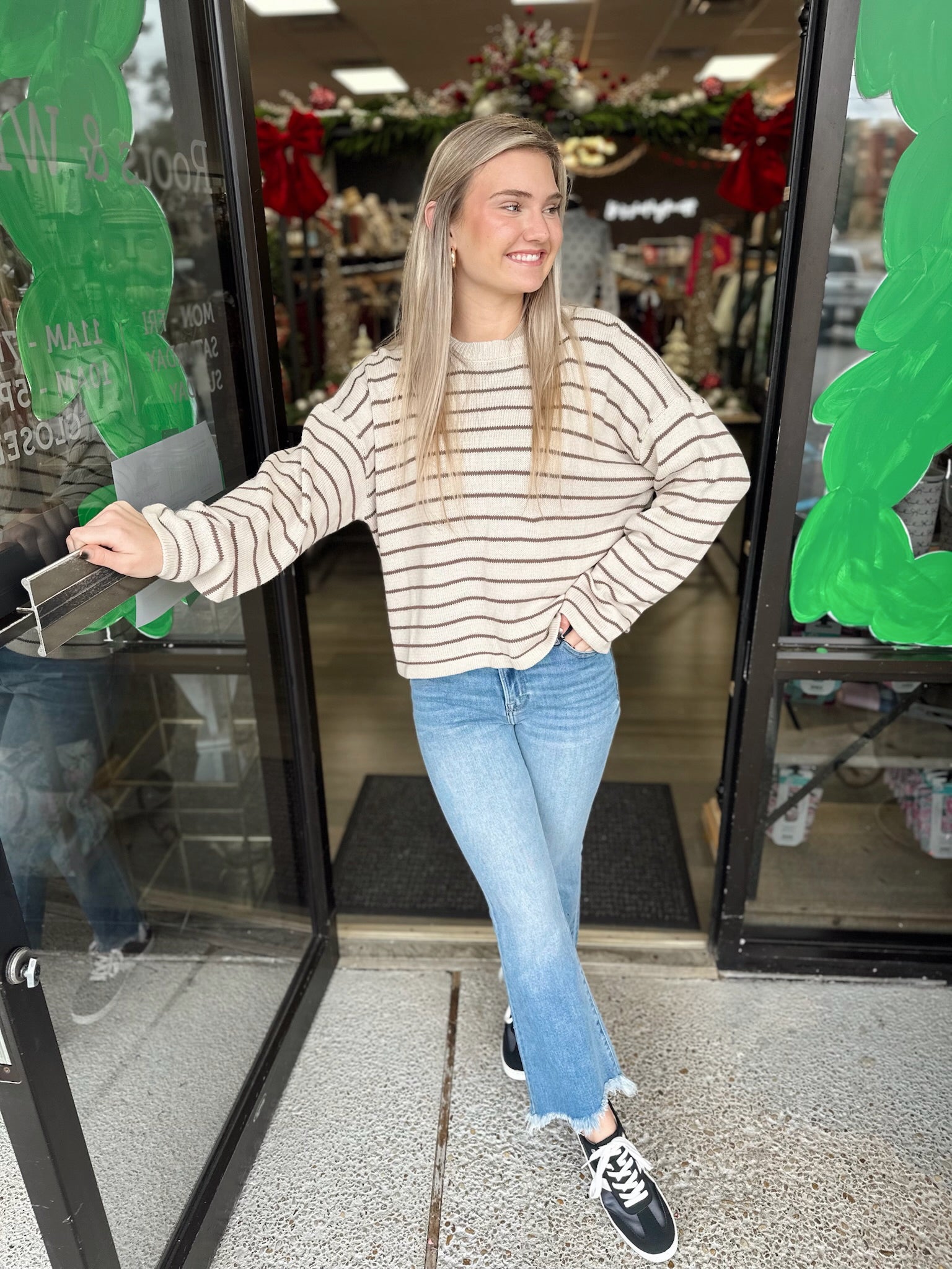 STRIPED DROP SHOULDER SWEATER TOP 60% COTTON, 40% ACRYLIC