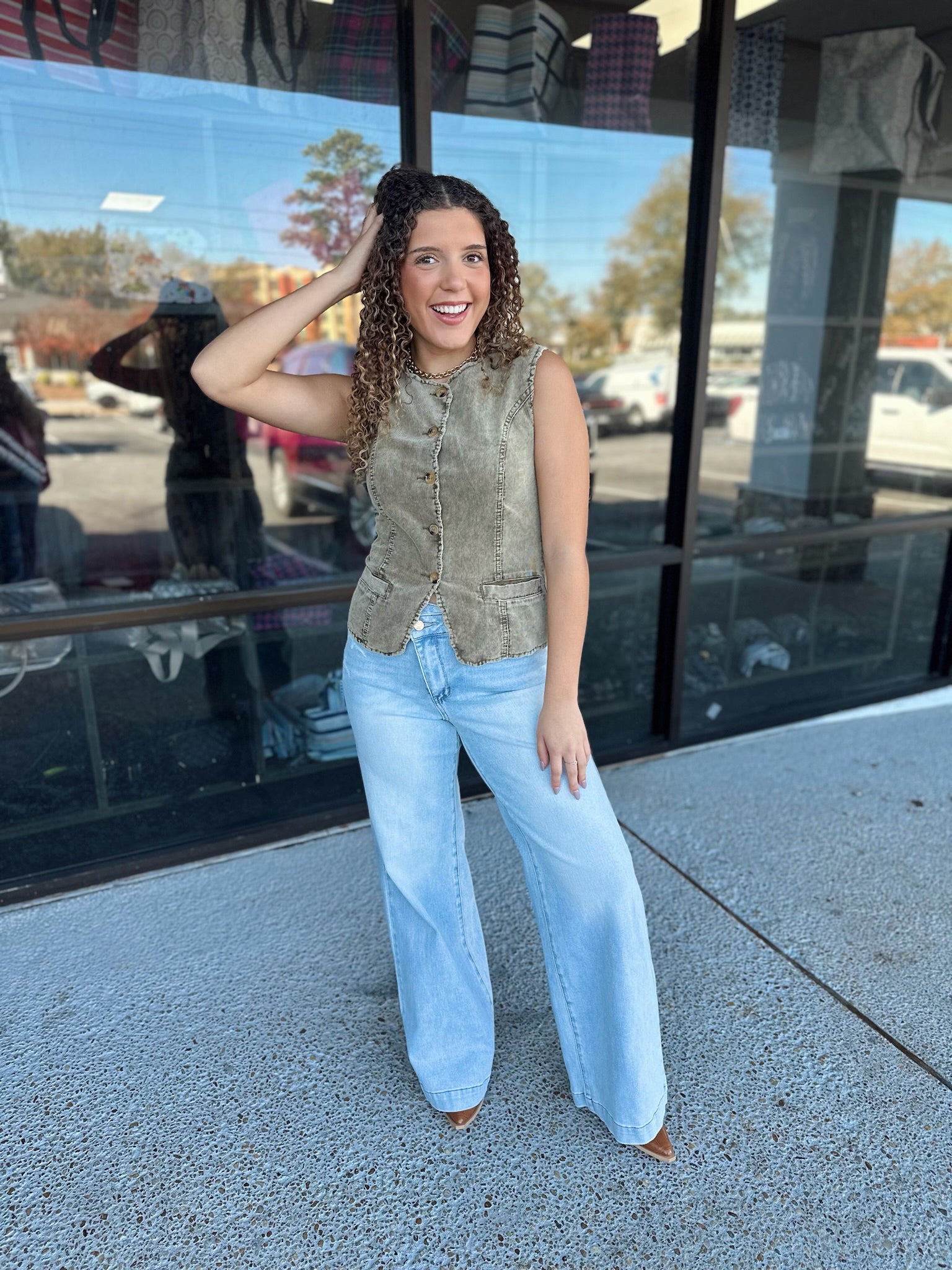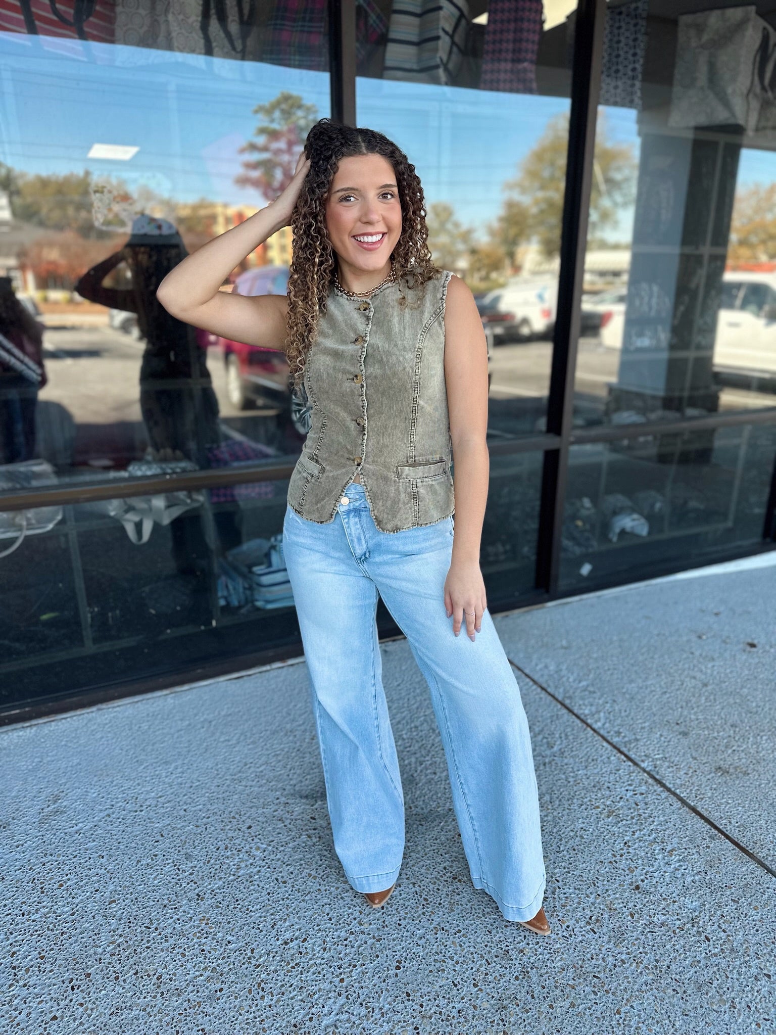 WASHED CORDUROY SCALLOP EDGE BUTTON FRONT VEST TOP