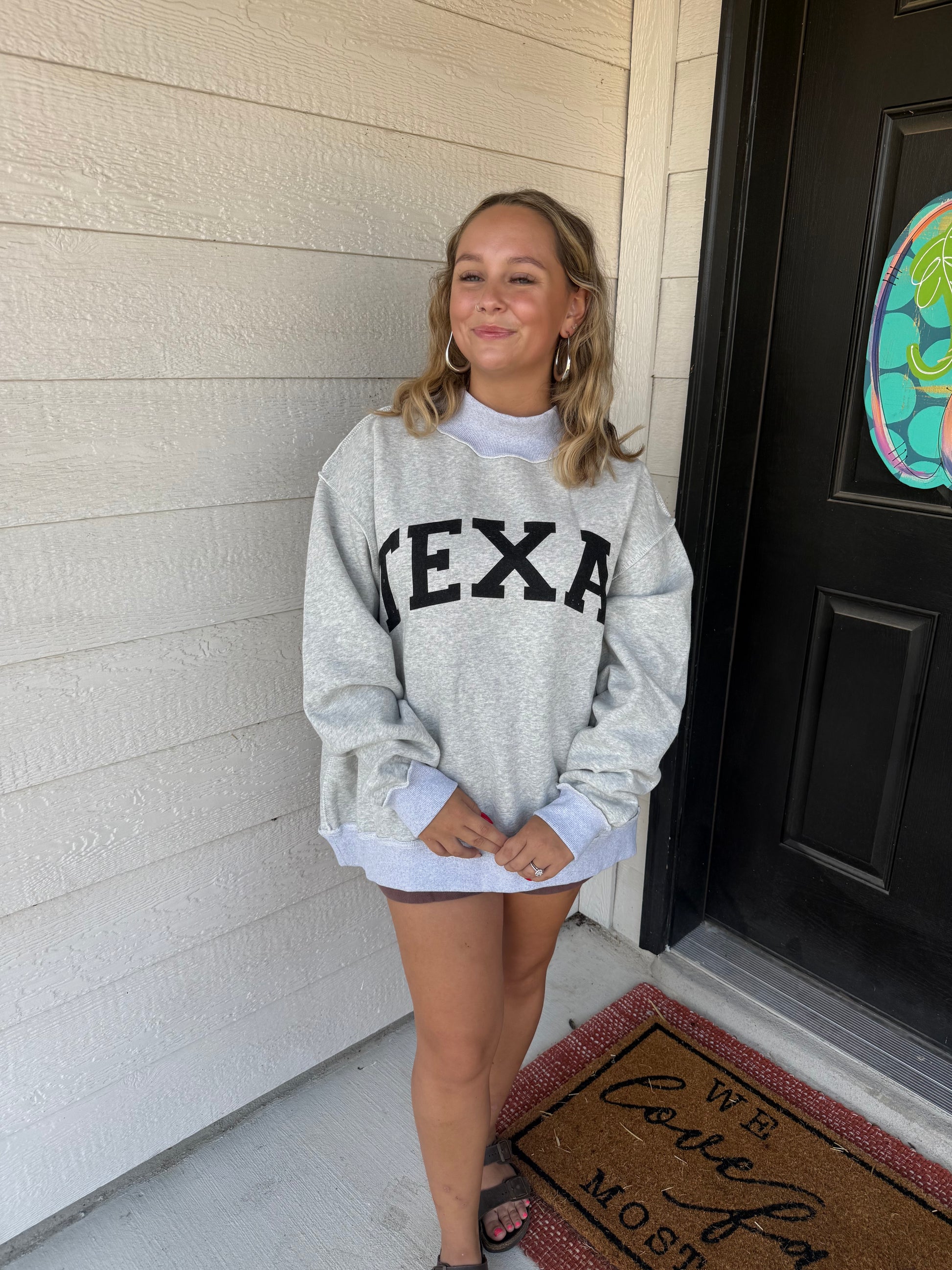 TEXAS/TX Reversible Mockneck-Heather Grey