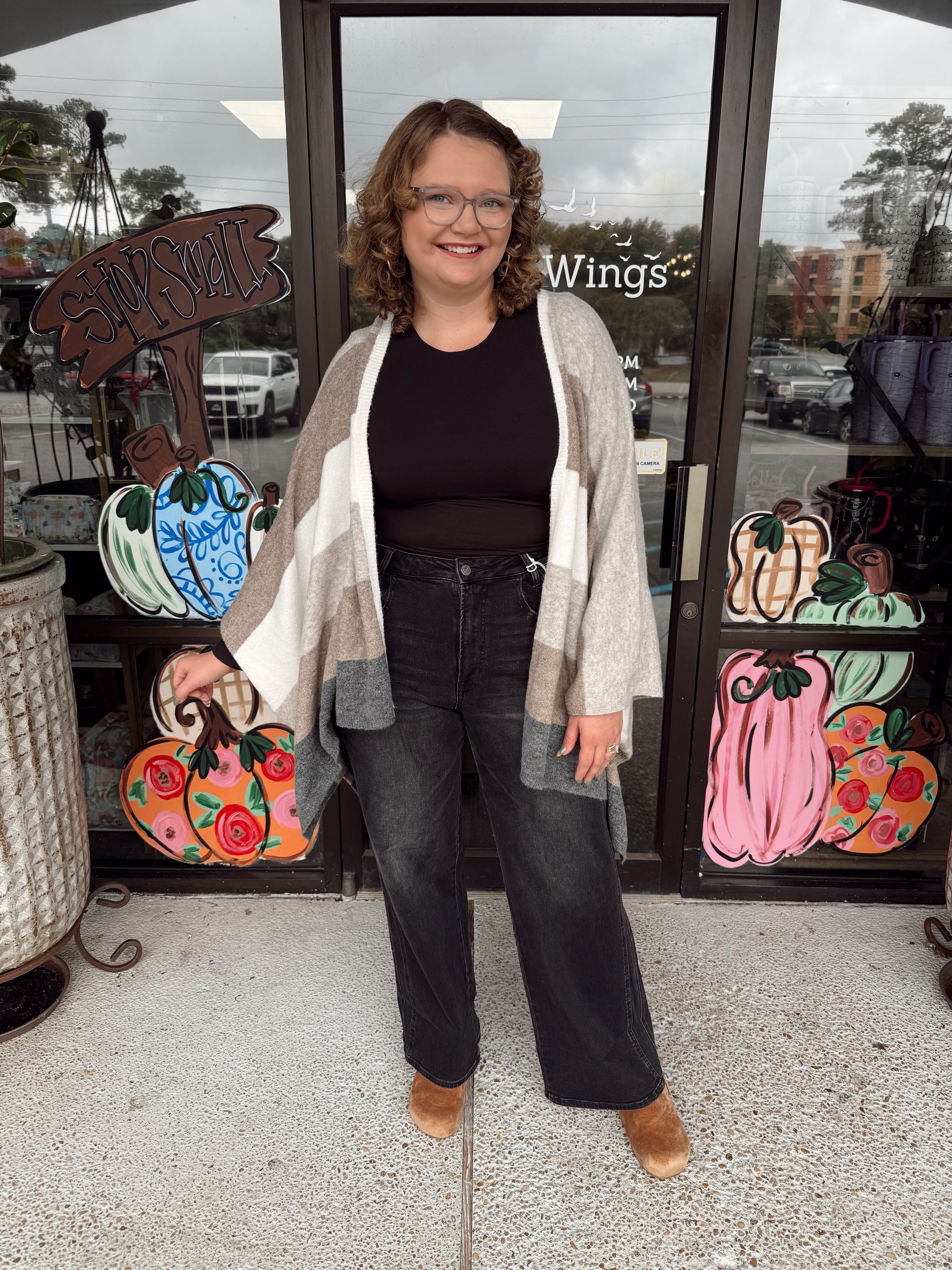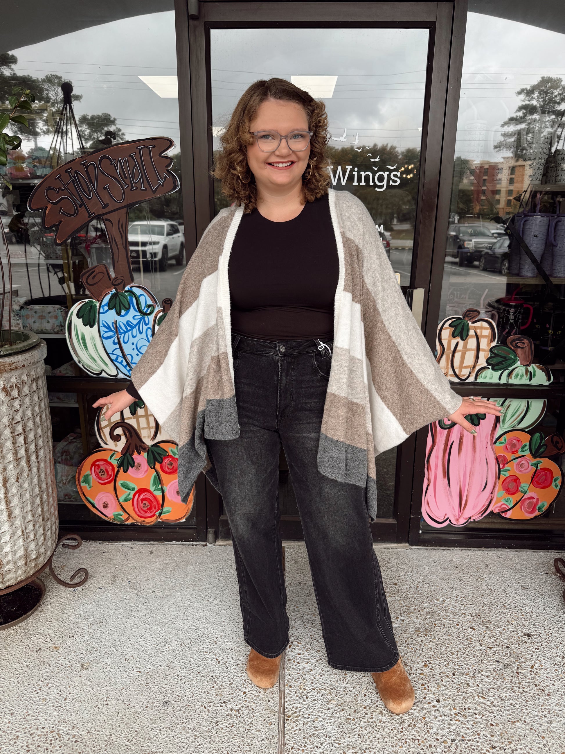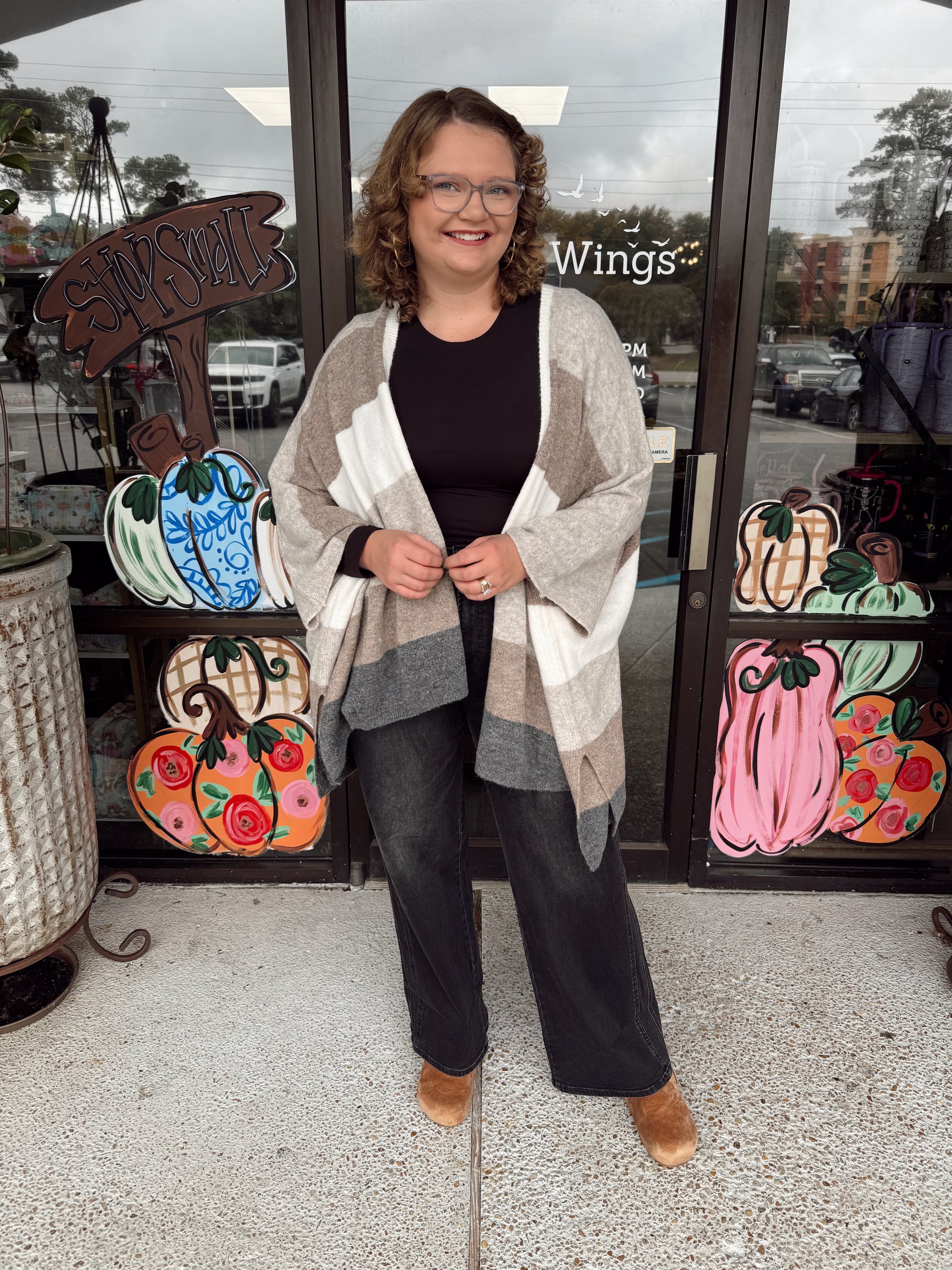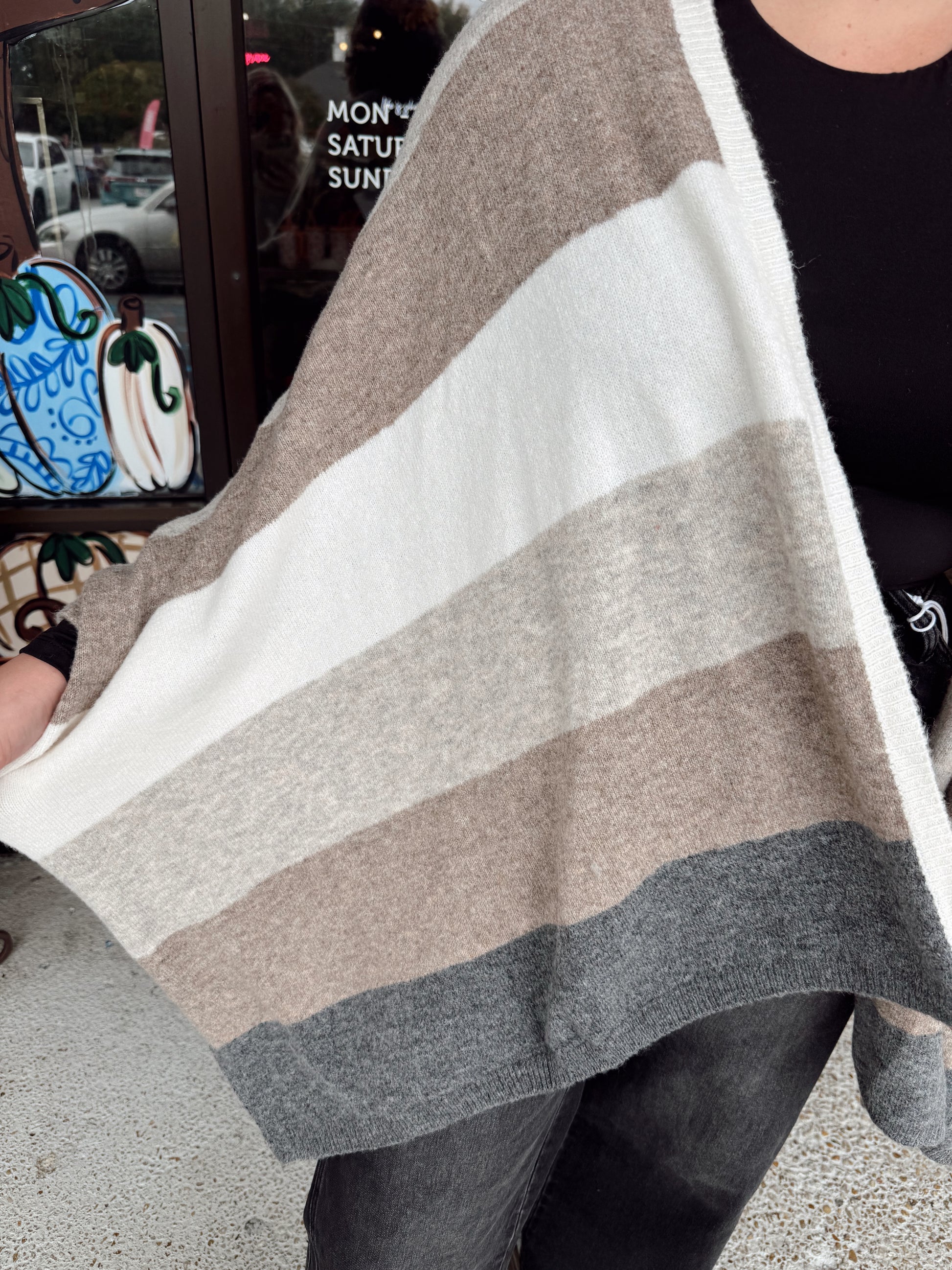 Zuri poncho cardigan features an open front design and striped detailing for an effortlessly stylish look. With ribbed trims and a side split hem, it's sure to become a wardrobe staple